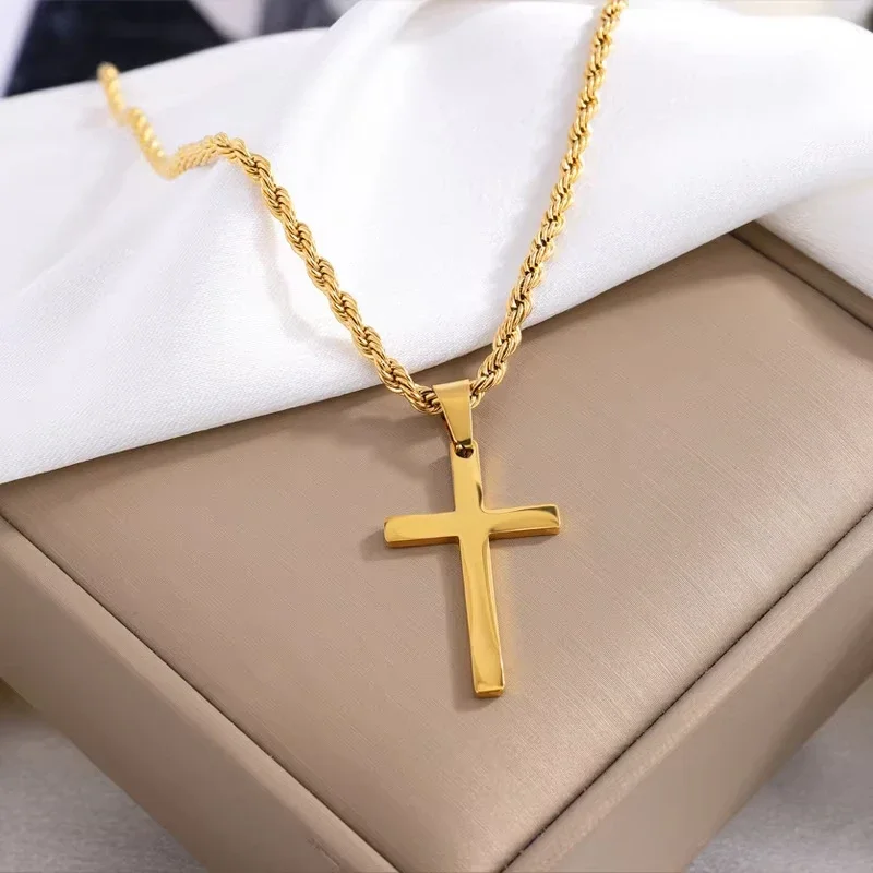 Men's and women's new cross pendant necklace, minimalist gold jewelry, men's and women's necklace