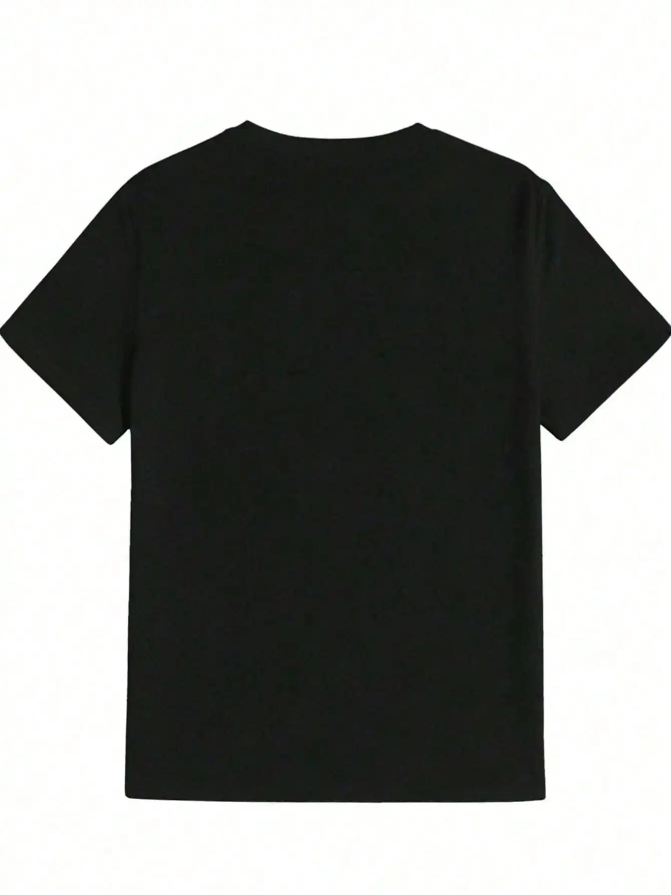 Men's Casual Summer T-Shirt Black Polyester With Vibrant Graphic Round Neck Machine Washable