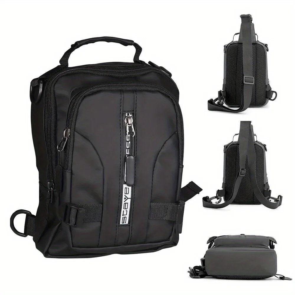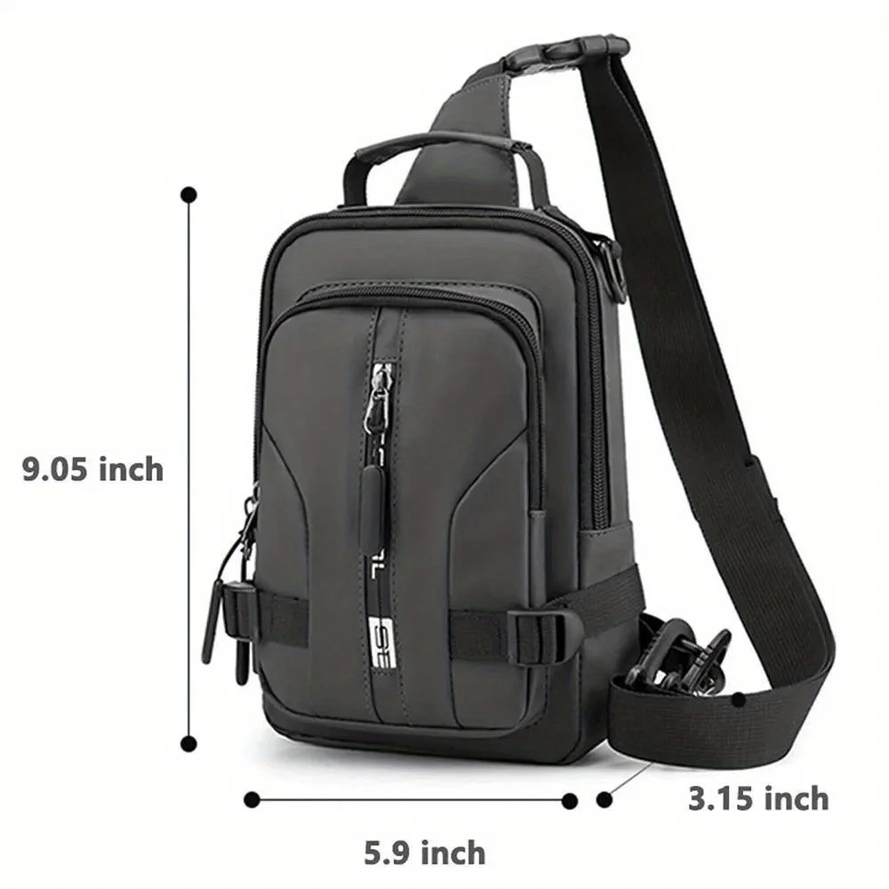 Mens Fashionable Nylon Crossbody Sling Bag - Water-Resistant, Zipper Closure, Adjustable Shoulder Strap, Alphabets Embellishment