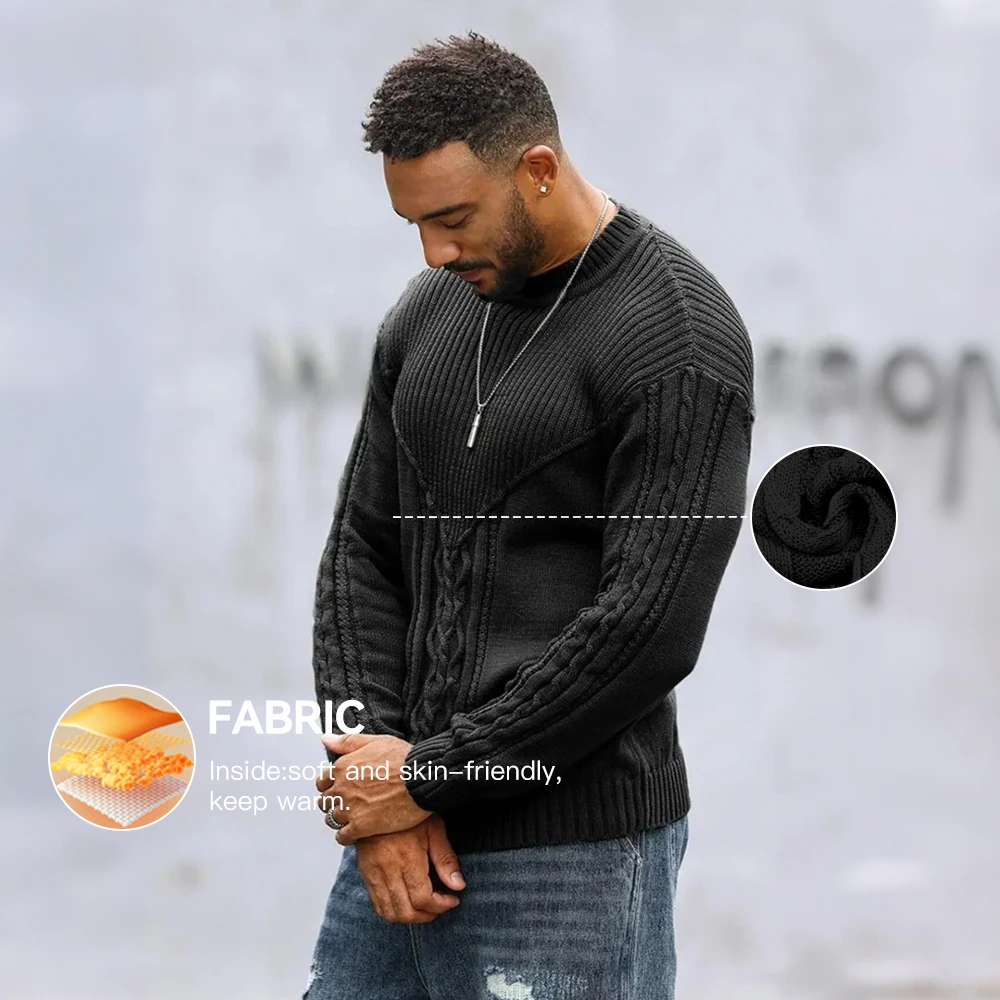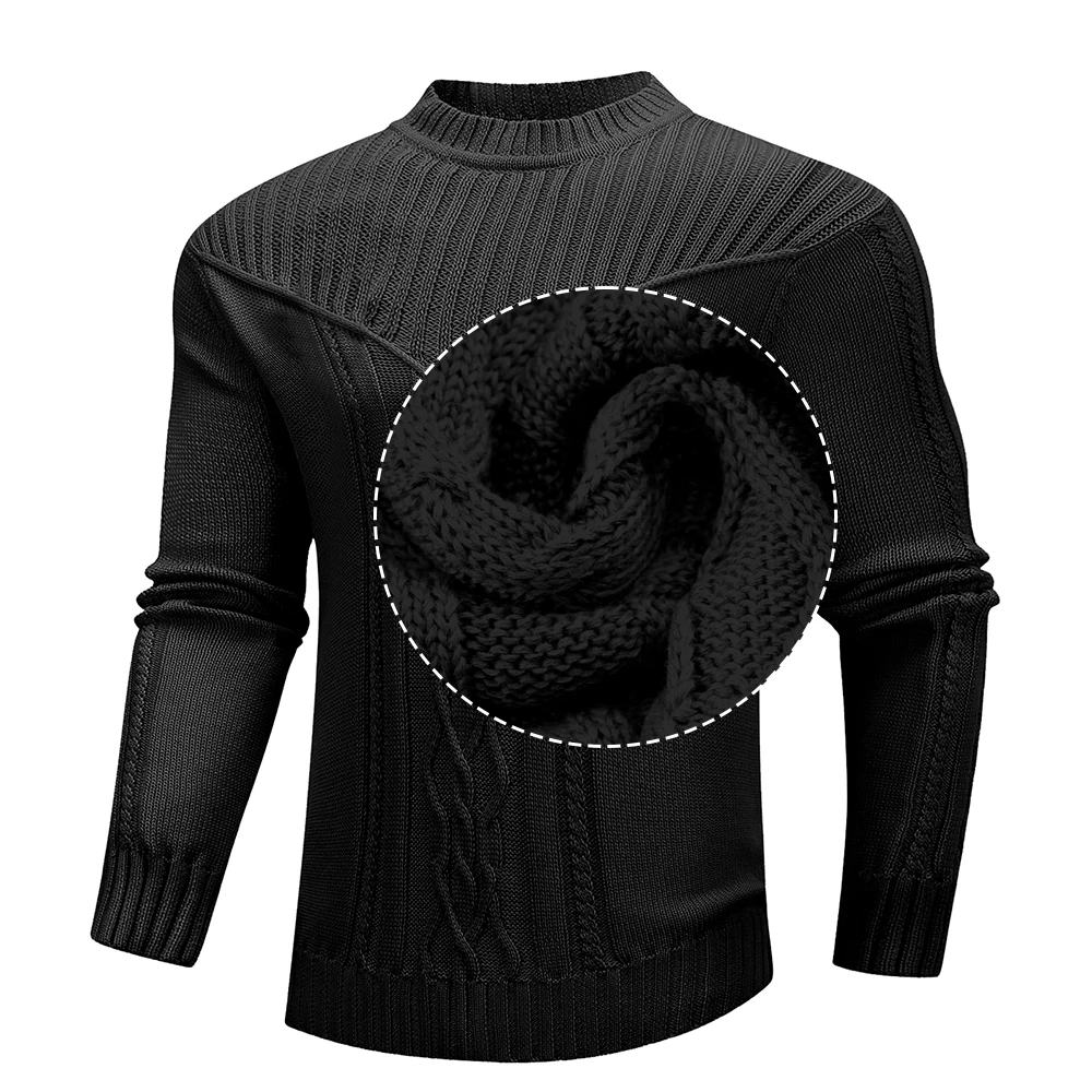Men's Sweater Winter Crewneck Warm Sweater Casual Cable Knit Pullover Popular Soft Drop Shoulder Solid Knitted Top US Size