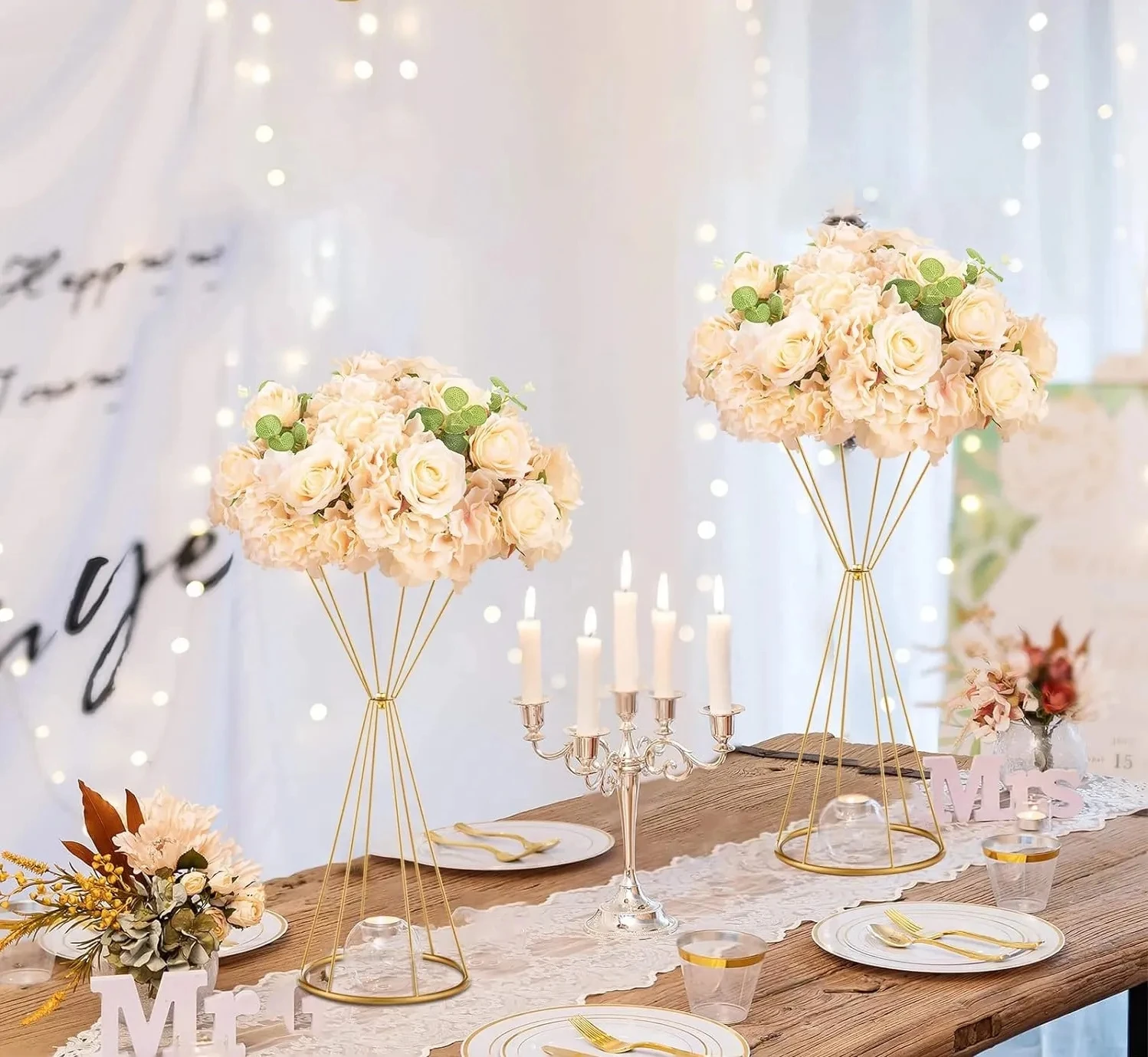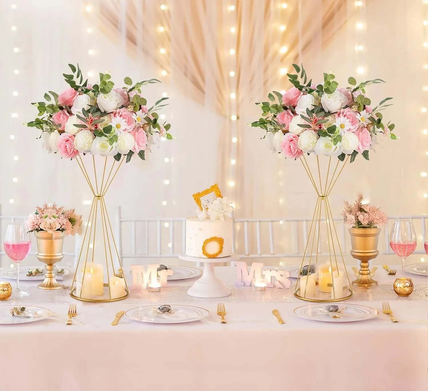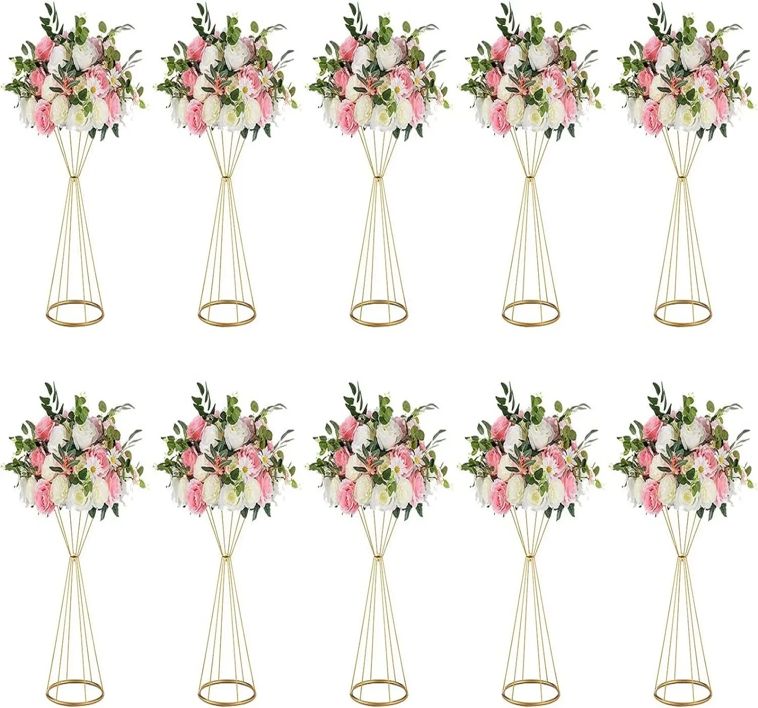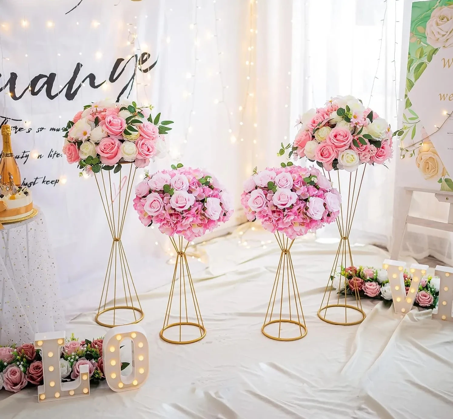 Metallic Gold Flower Stand,Rustproof Centerpiece for Wedding Table, Christmas Party Decor with Metal Base, Floral Vase Holder