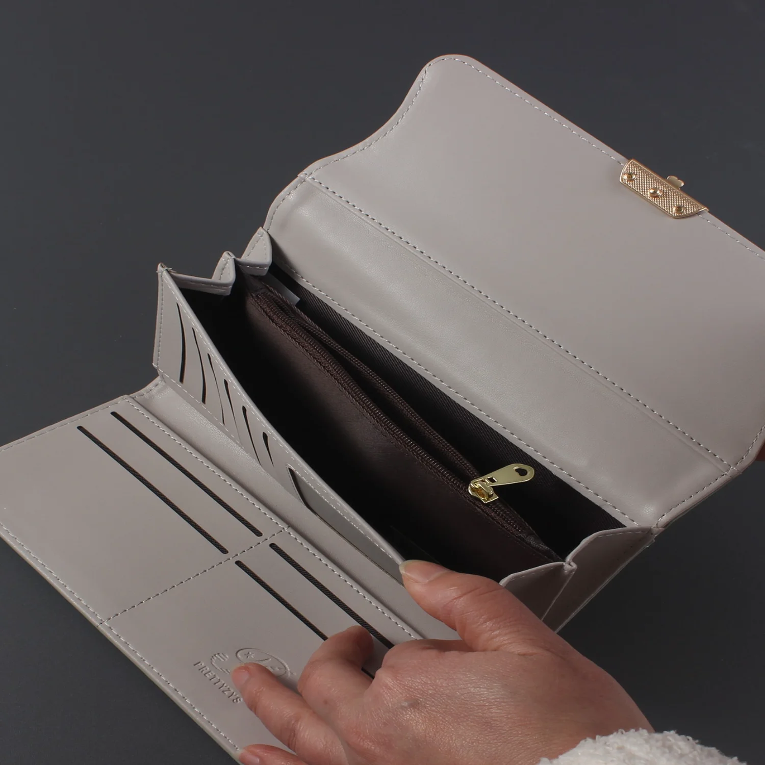 Minimalist Metal Decor Long Wallet Checkbook Cover Lightweight Modern Business Credit Card ID Card Money Cash Business Casual Te