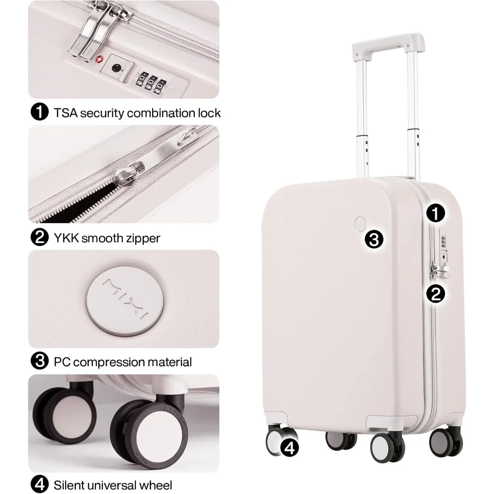 mixi Carry on Luggage, 20'' Suitcase Spinner Wheels Luggage Hardshell Lightweight Rolling Suitcases PC with Cover & TSA Lock for