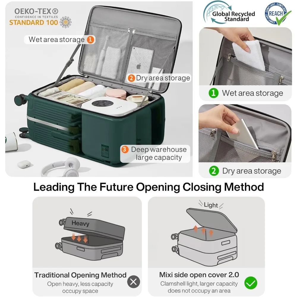 • 【One-Piece Side Opening Design】The design is different from the traditional way of opening and closing the suitcase in half, which is more convenient and less labor-saving. Mixi patent design, focus on luggage industry over 10 years, please believe Mixi brand power