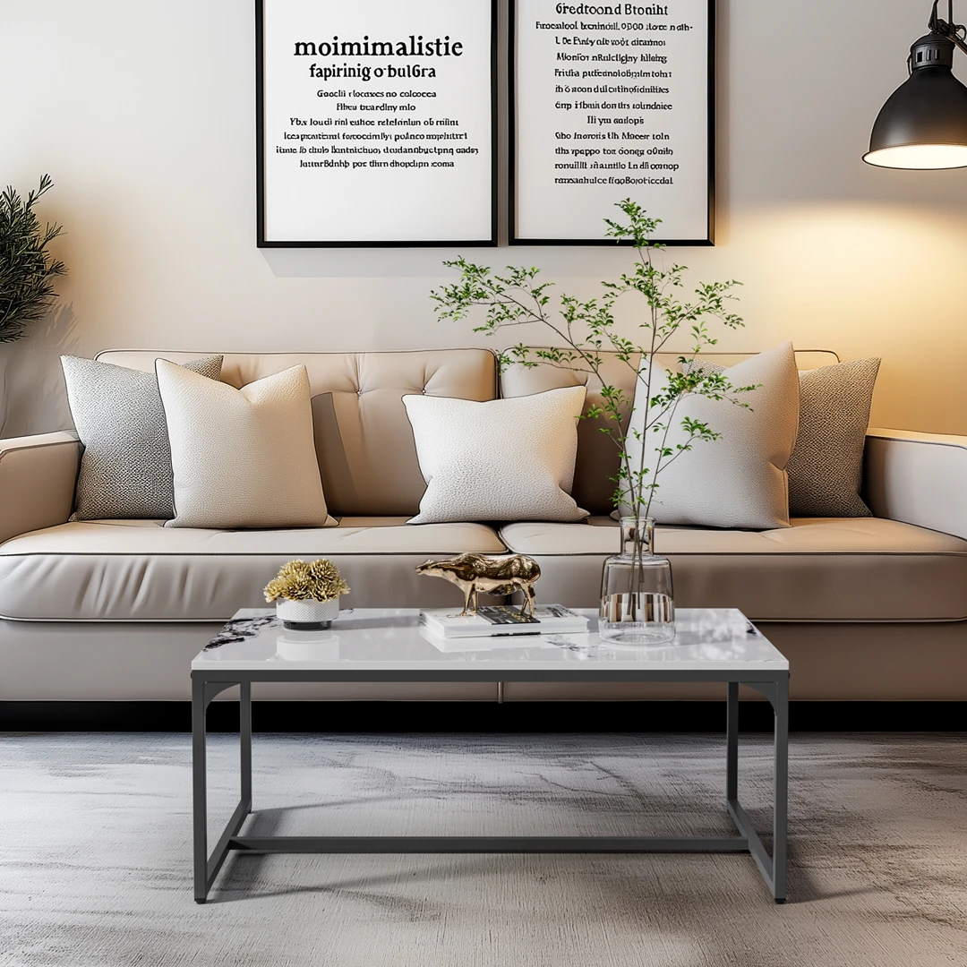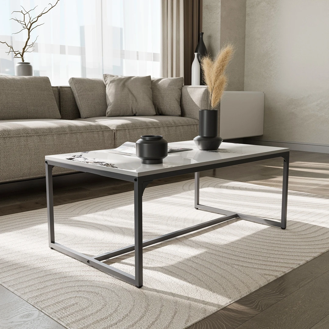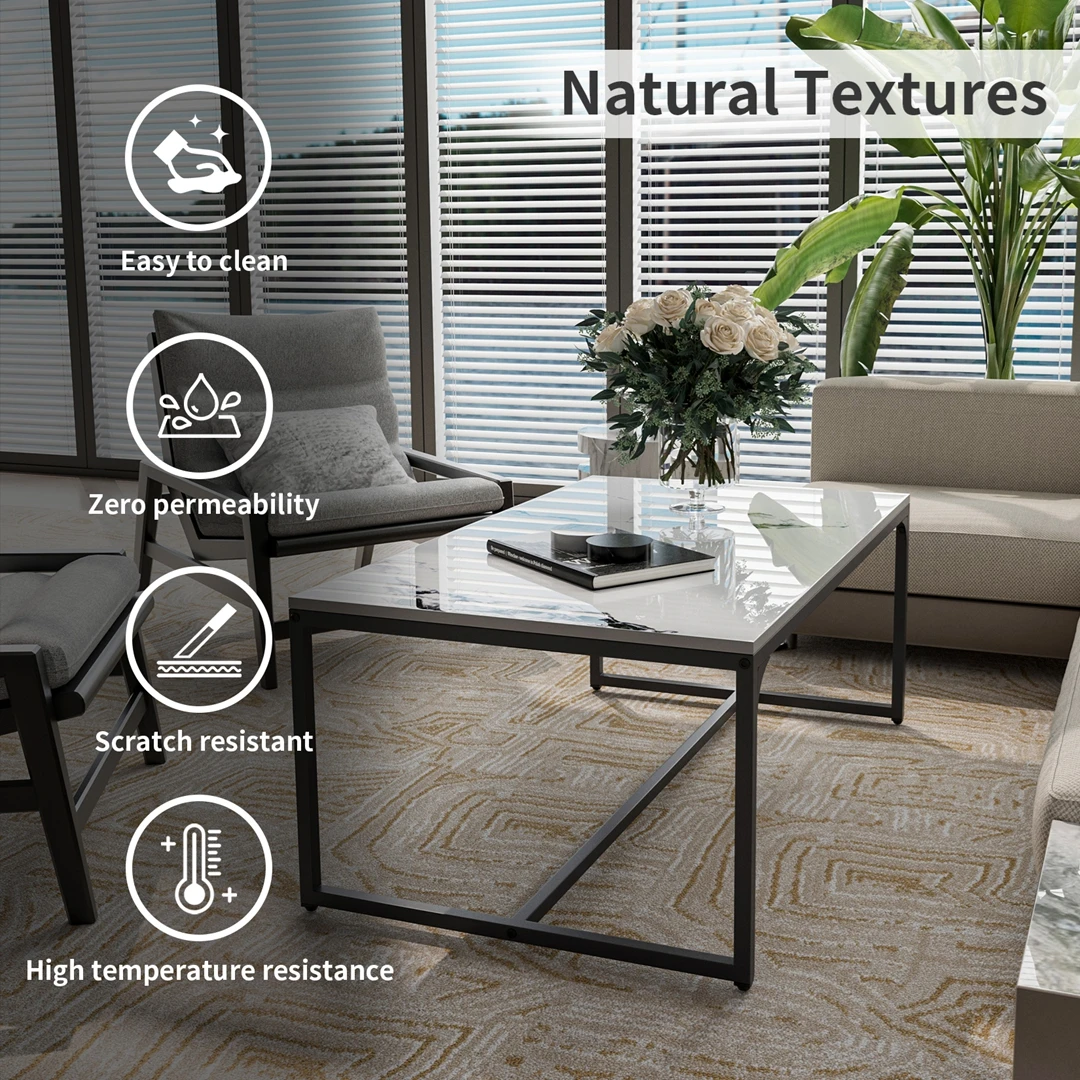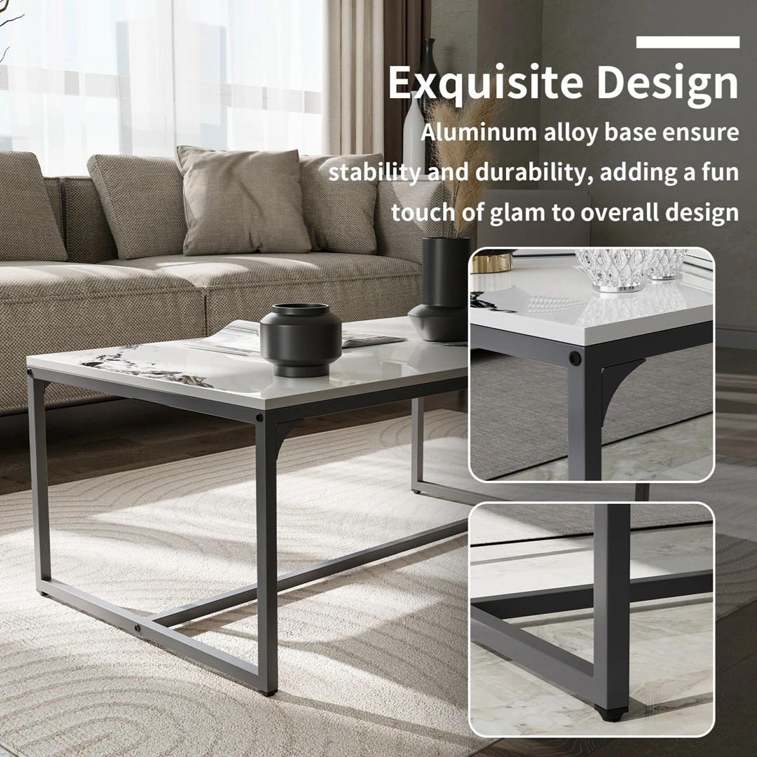 Modern Rectangular Coffee Table |Chic Sintered Stone Top|Black Aluminum Frame| Space-Saving Living Room & Bedroom Side Table