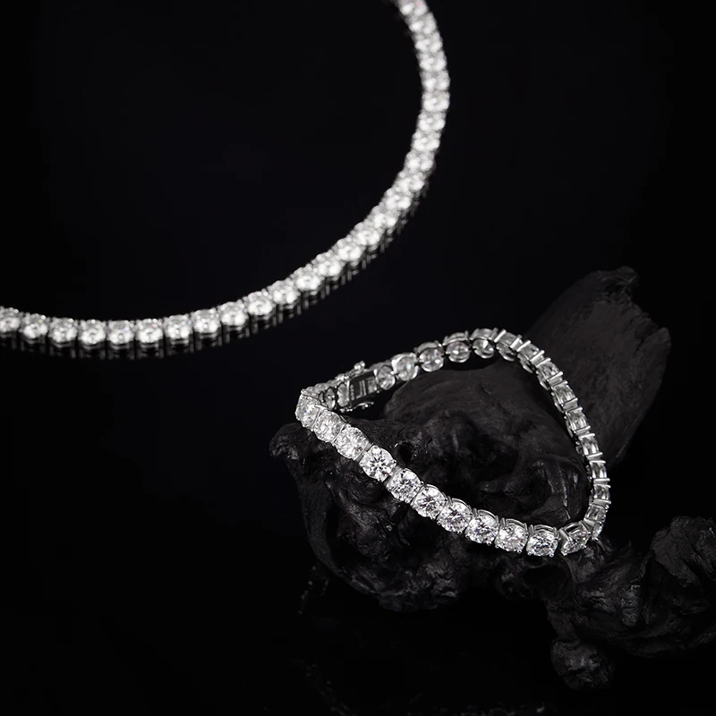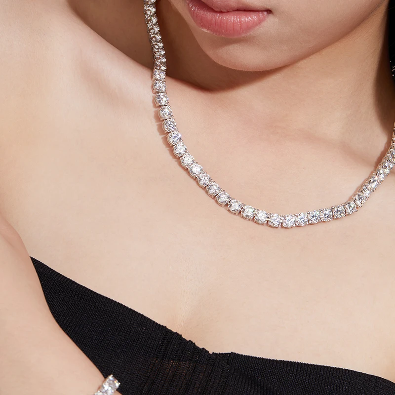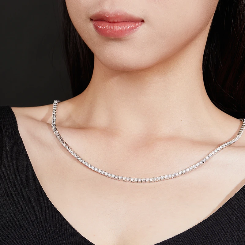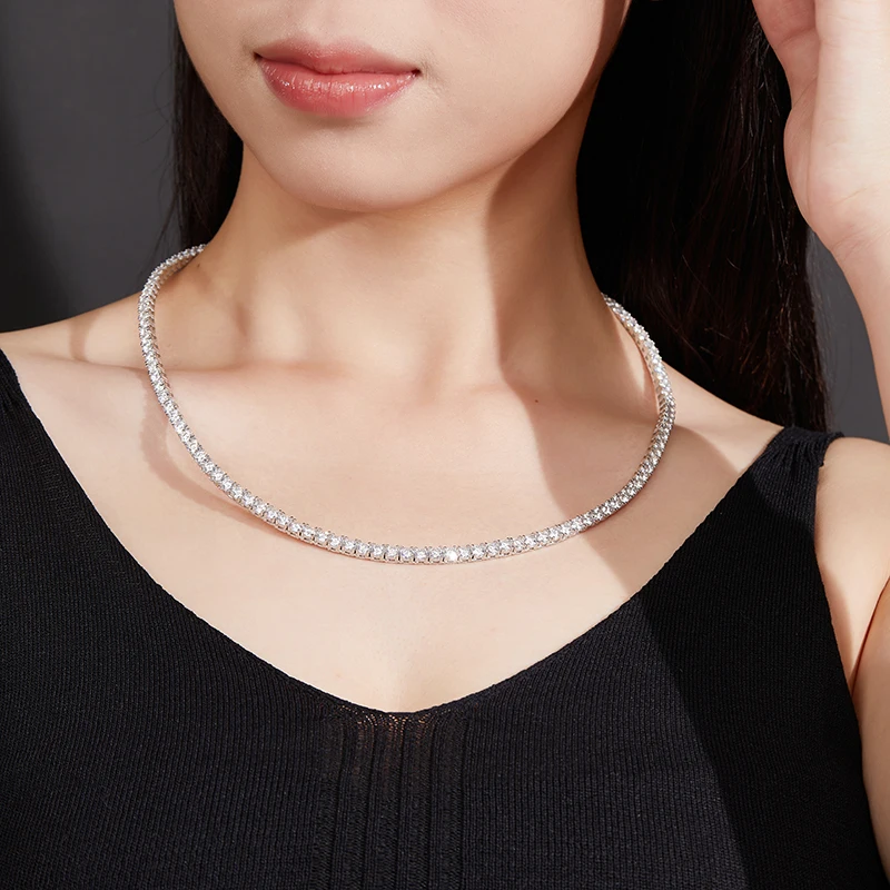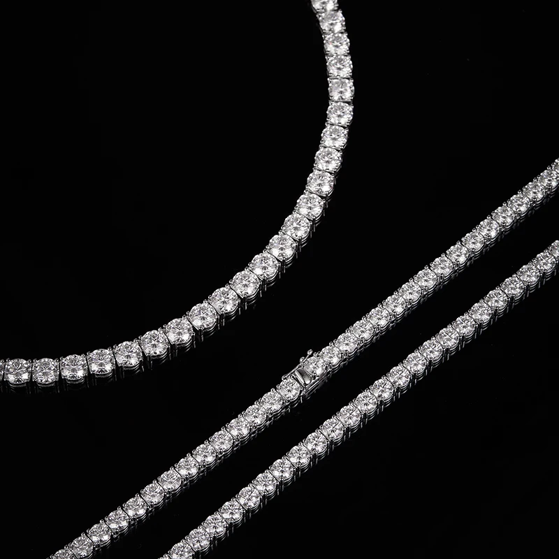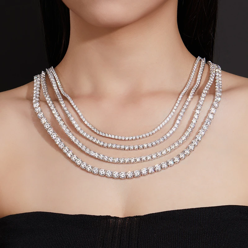 Moissanite Tennis Necklaces For Man Women 3/4/5/6.5mm Full Diamond With GRA 925 Sterling Silver Plated 18k White Gold Jewelry
