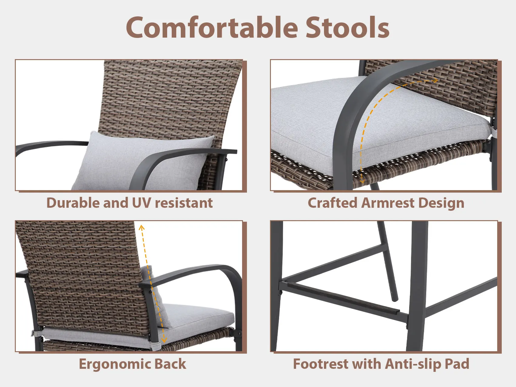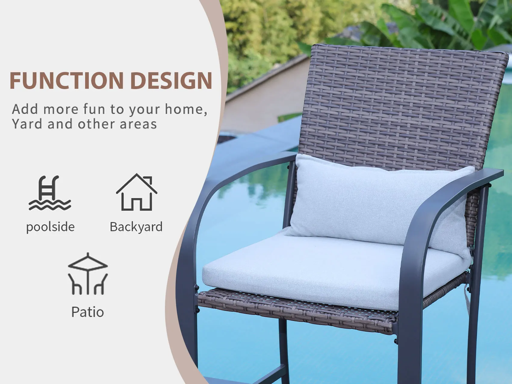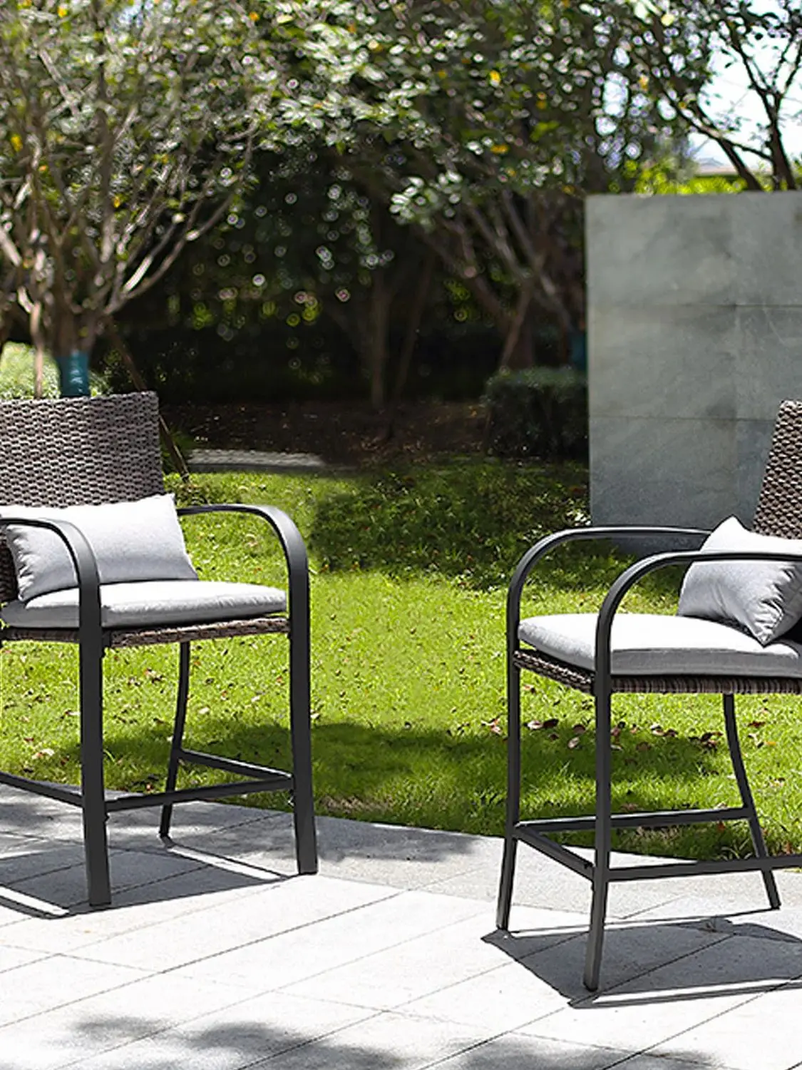 NAGA BAHNA 2pcs Patio Bar Chair with Soft Cushion, Rattan Wicker Outdoor Furniture Set for Backyards, Lawn, Deck, Poolside