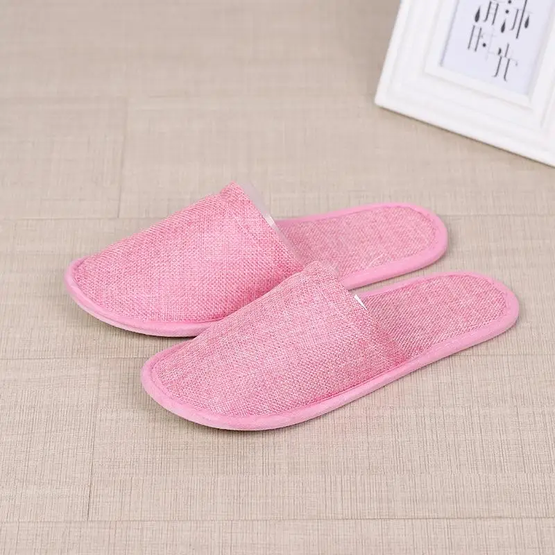 Thick cotton and linen disposable hotel slippers,lined with plush,soft and comfortable.Mesh non-slip sole,strong anti-slip effect.The foot feels light and comfortable.