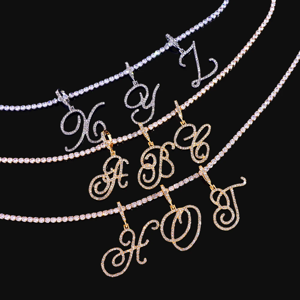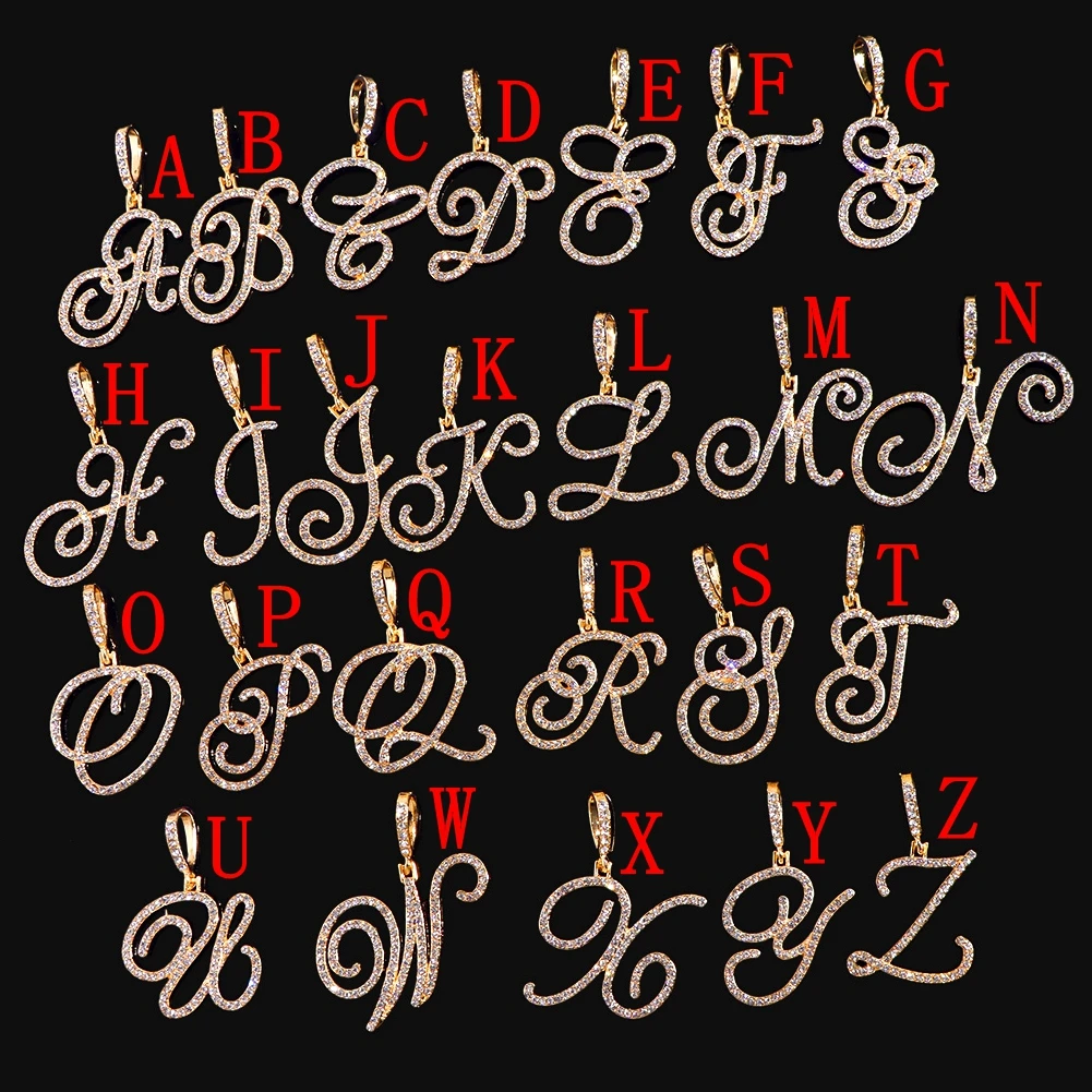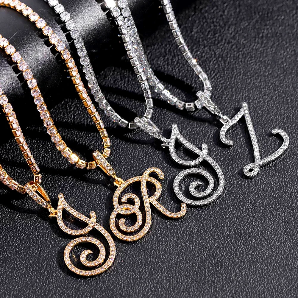 New Cursive Letters Cubic Zirconia Chain Intial Name Necklace Hip Hop Jewelry Gold Silver Color CZ 26 Alphabet Pendant Necklaces