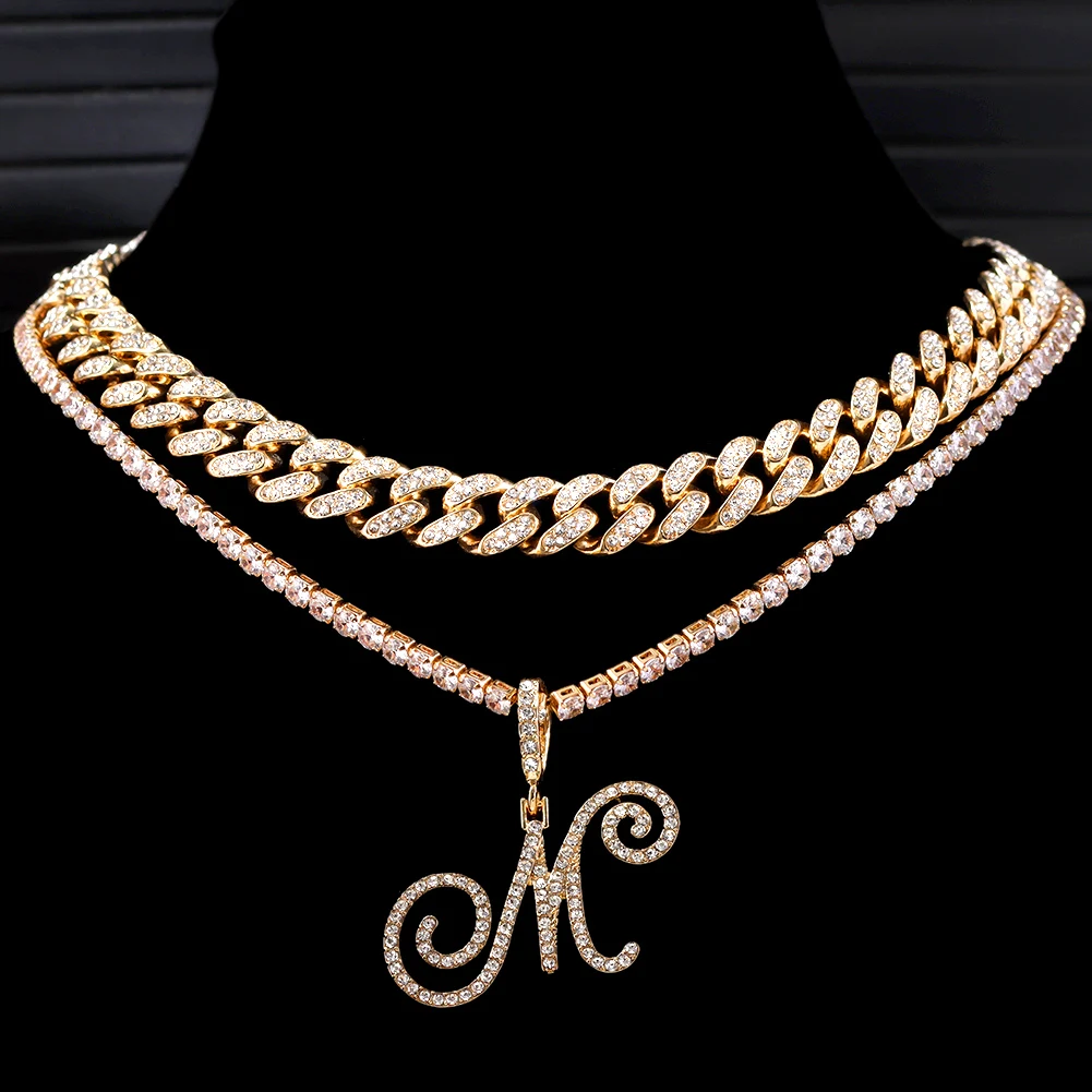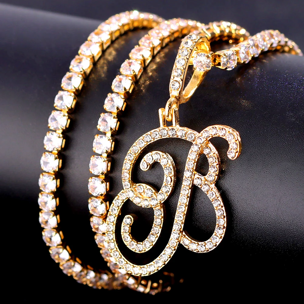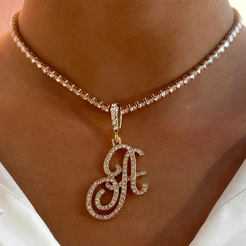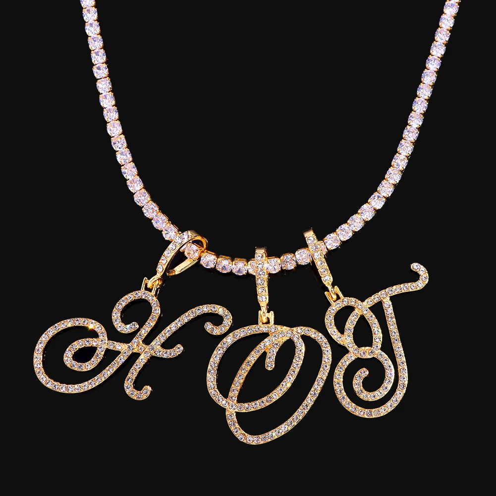 New Cursive Letters Cubic Zirconia Chain Intial Name Necklace Hip Hop Jewelry Gold Silver Color CZ 26 Alphabet Pendant Necklaces