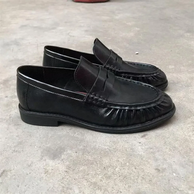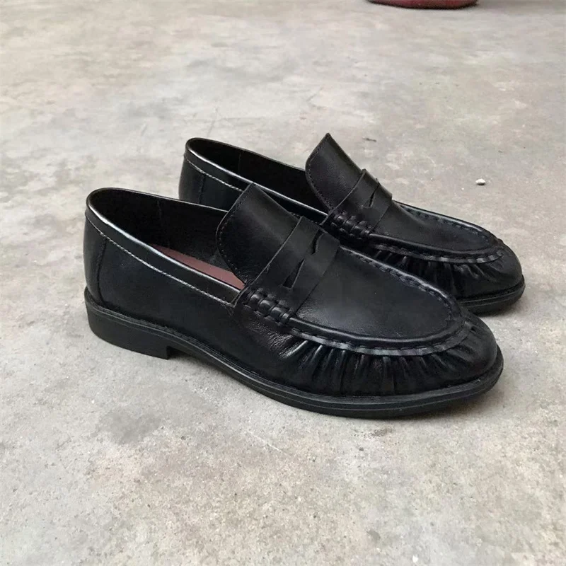 New French retro flat shoes made of pure handmade calf leather, Le Fu women's rubber sole, one-step comfortable and casual singl