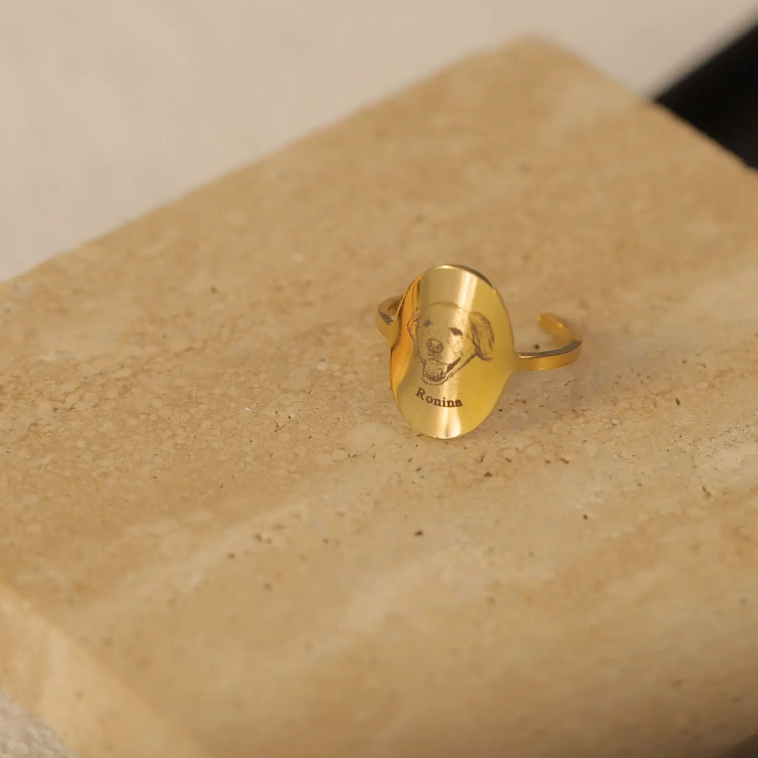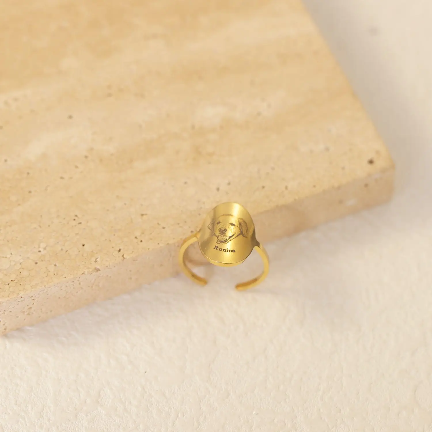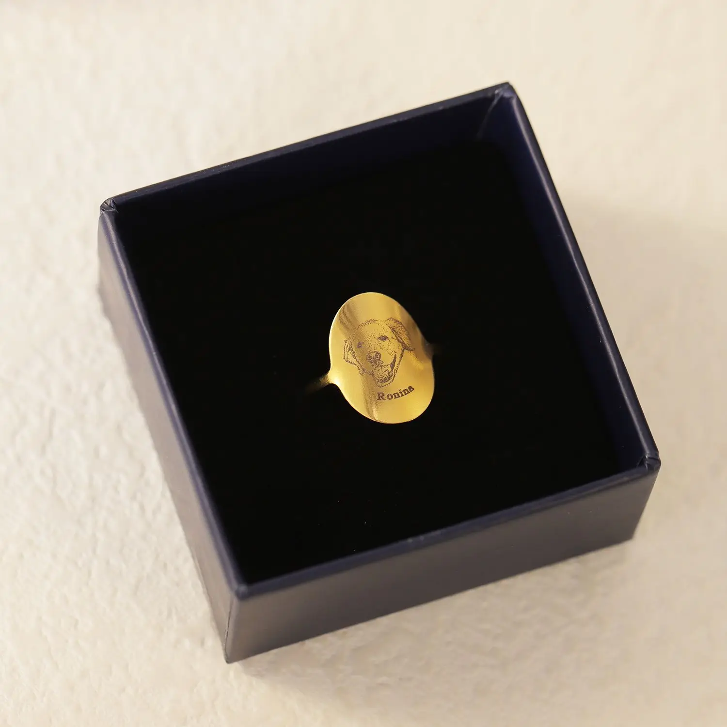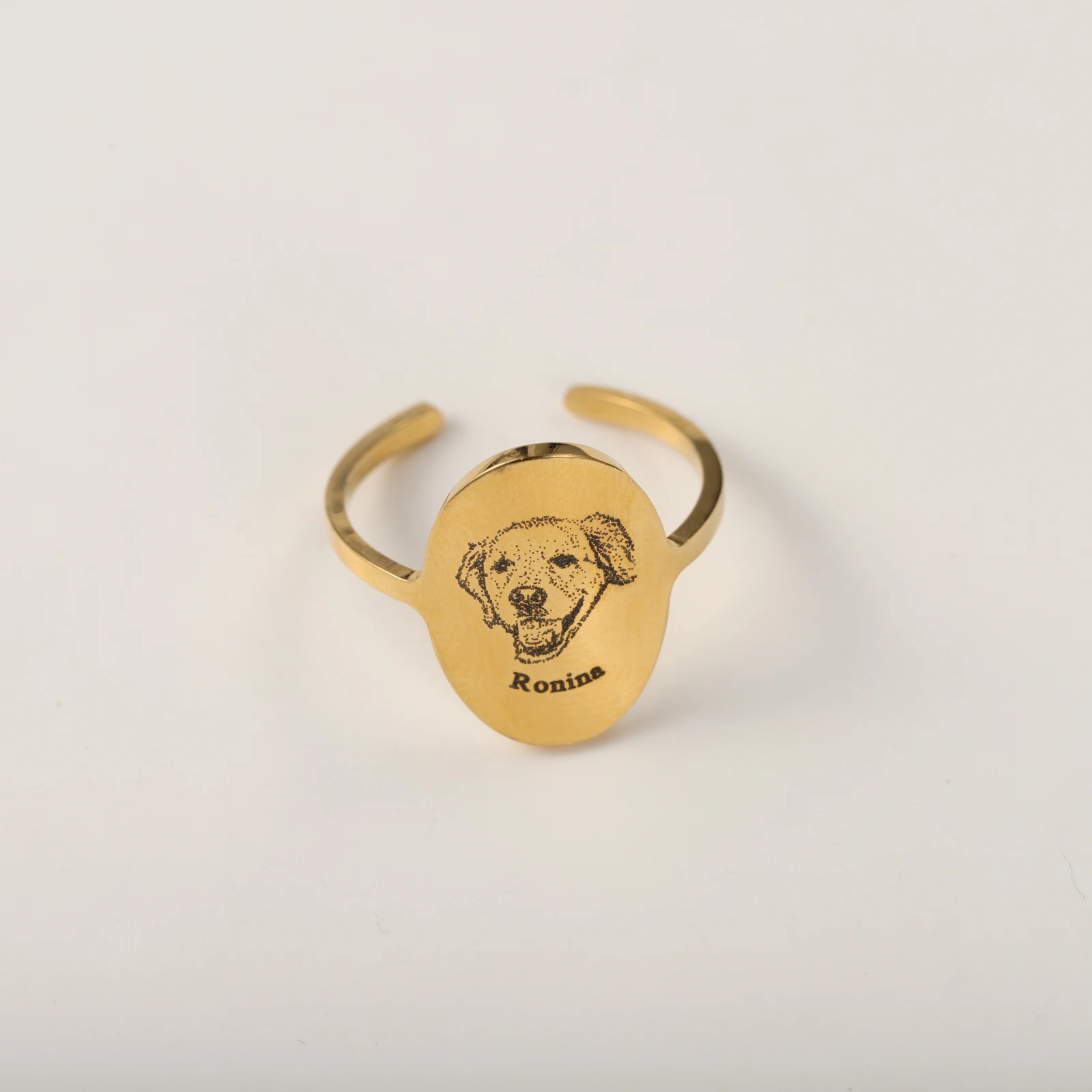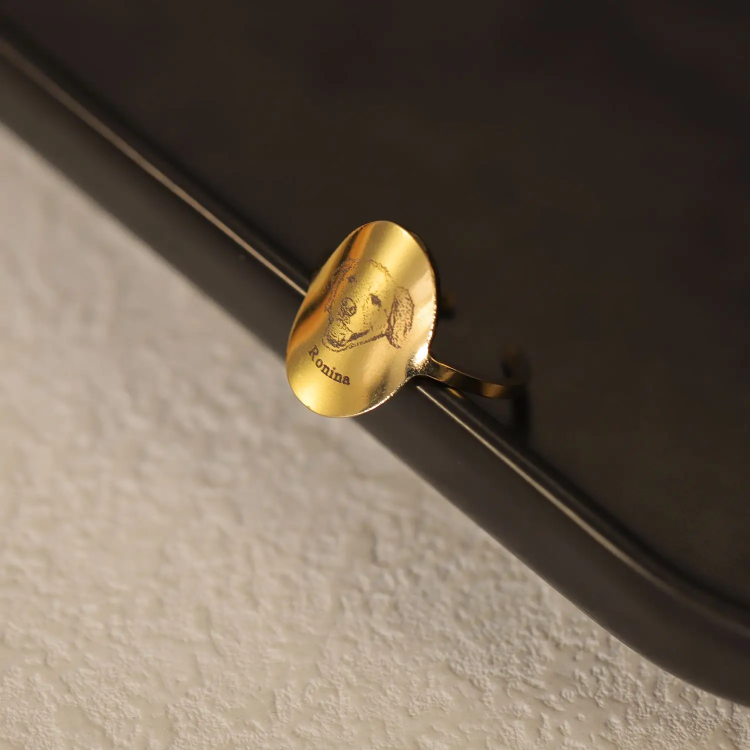 Open Adjustable Pet Avatar Photo Name Ring High Quality Stainless Steel Oval Women's Jewelry Christmas Meaning Gift For Women