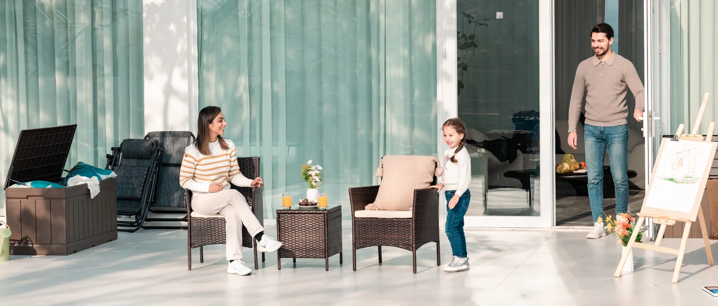 2. Sturdy & Durable Construction: Outer frame is made of all-weather resistant and chemical resistant PE rattan, which helps to slow fading and increase durability. Powder-coated steel can prevent itself from rusting while increasing the stability. Each seat is built to withstand 335lb and the coffee table can bear 65lb.