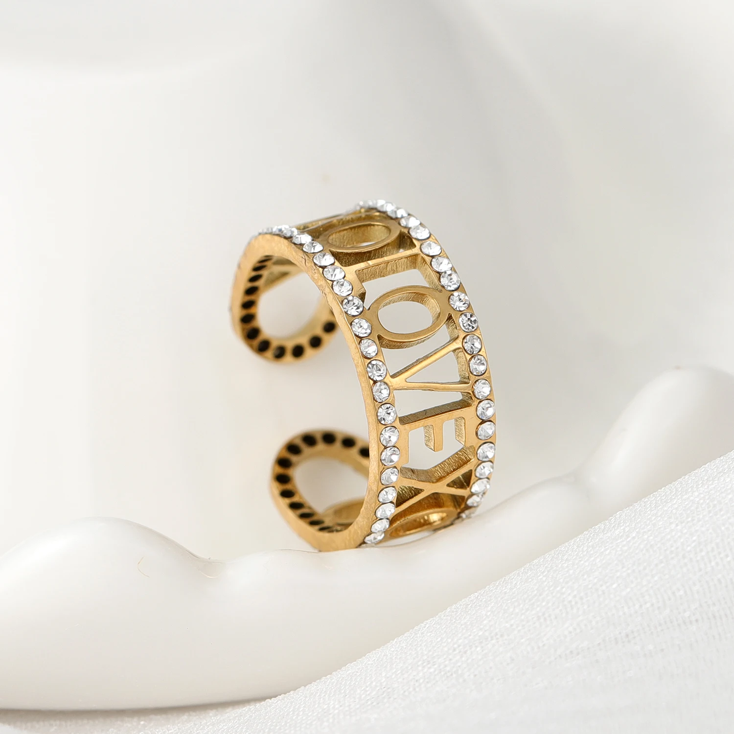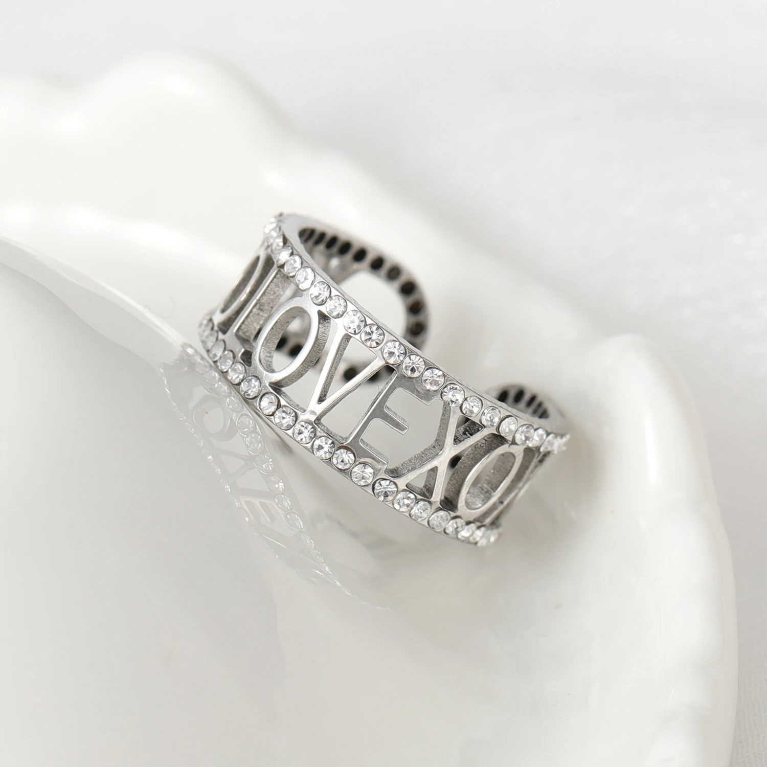 Personalized Name Ring Cutout Crystal Letter Ring Open Name Ring Birthday Gifts for Women Valentine's Day Christmas Goft for Her