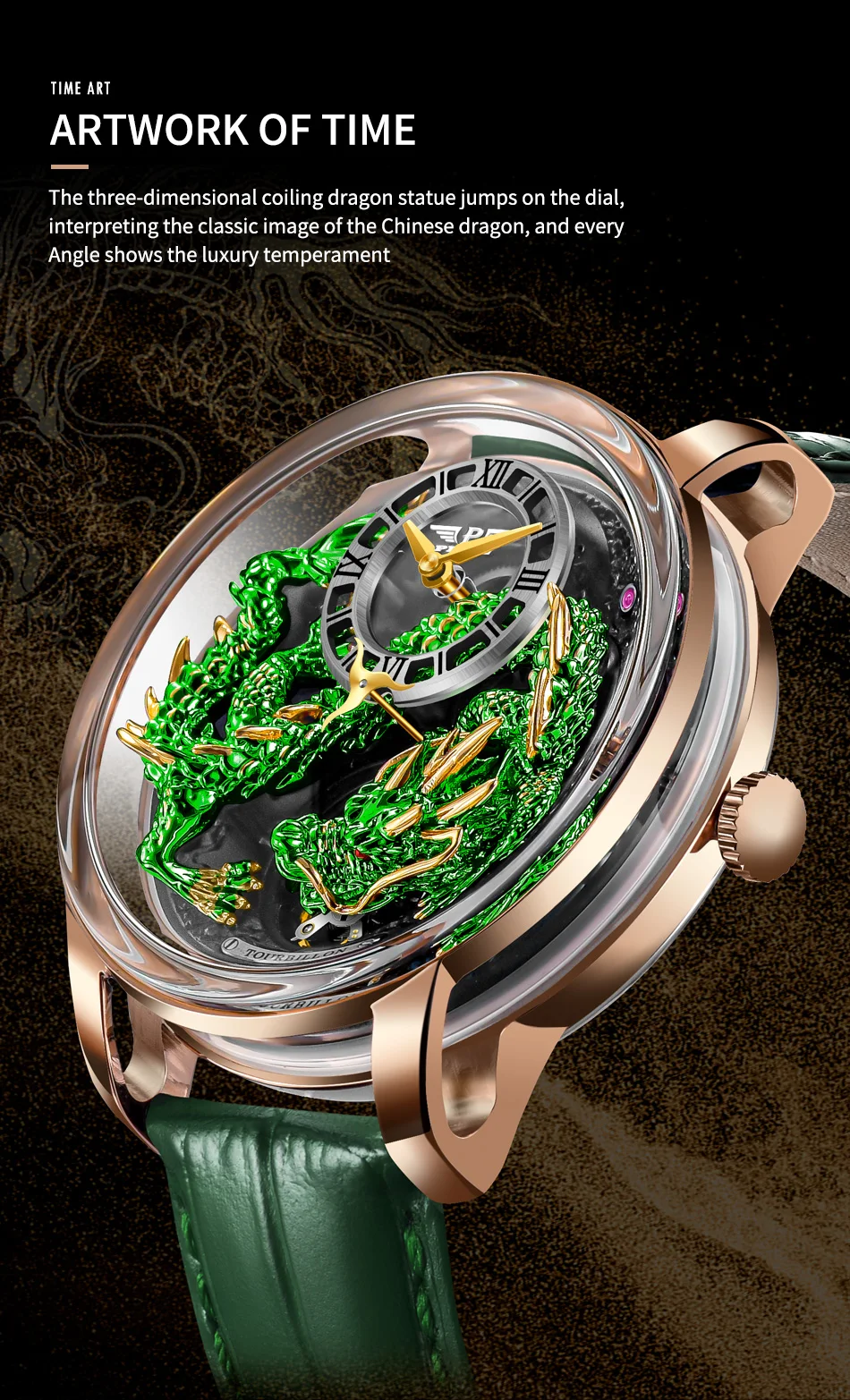 PINDU Design Wristwatches Original Dragon Theme Mechanical Watches Men Celestial Series Curved Mirror Transparent Design Watch