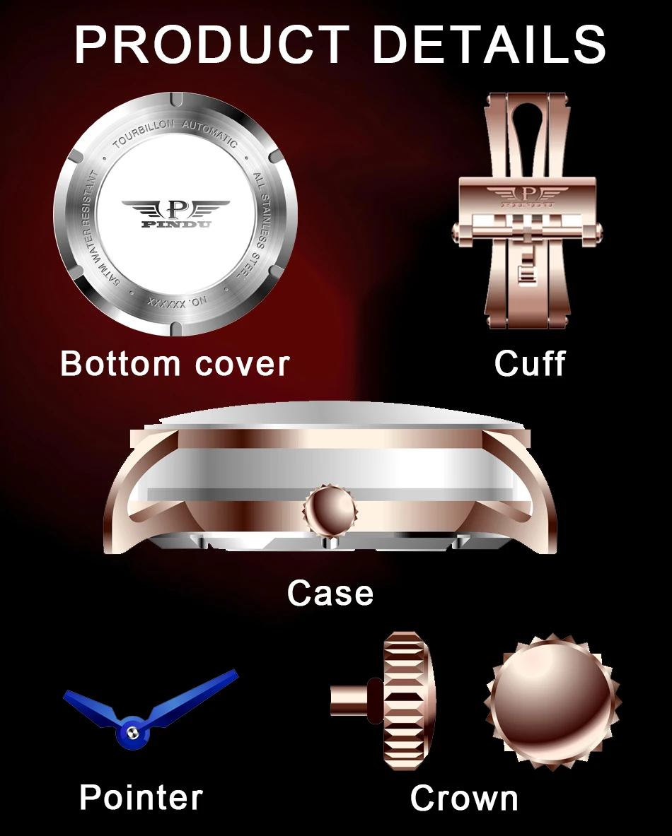 PINDU Watch New TOP Men Mechanical Watch Godfather Fashionable Classic Series Sapphire 45.5MM Wristwatches Men