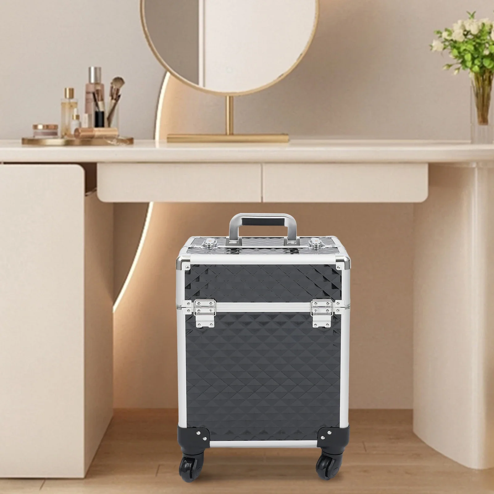Professional Rolling Makeup Case - Black, Multi-Functional with High Load Capacity suitcase