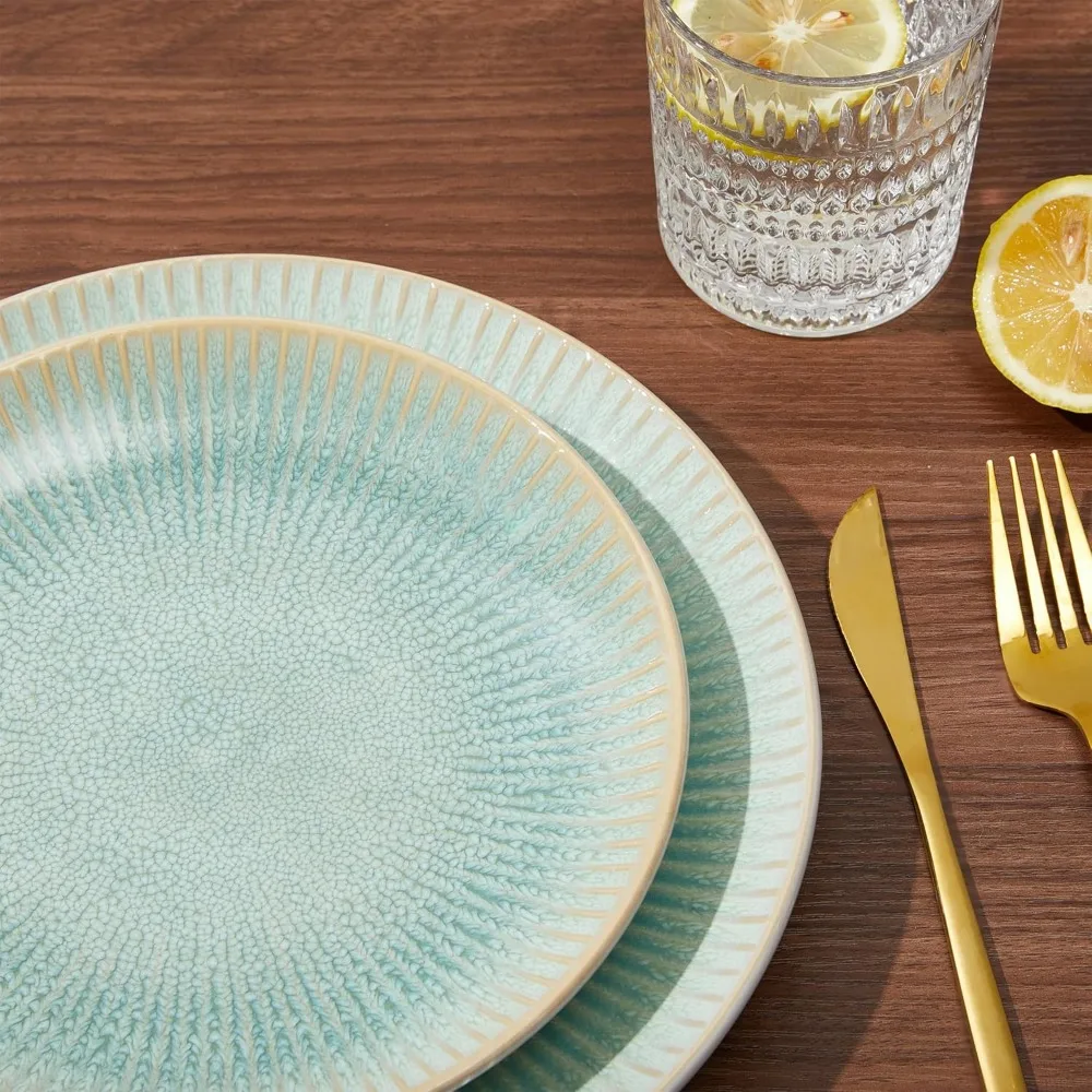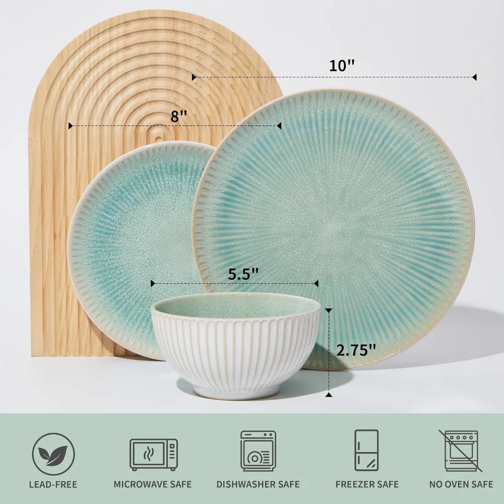Round Reactive Glazed Stoneware Dinnerware Set, Microwave and Dishwasher Safe Ceramic Plates and Bowls Collection
