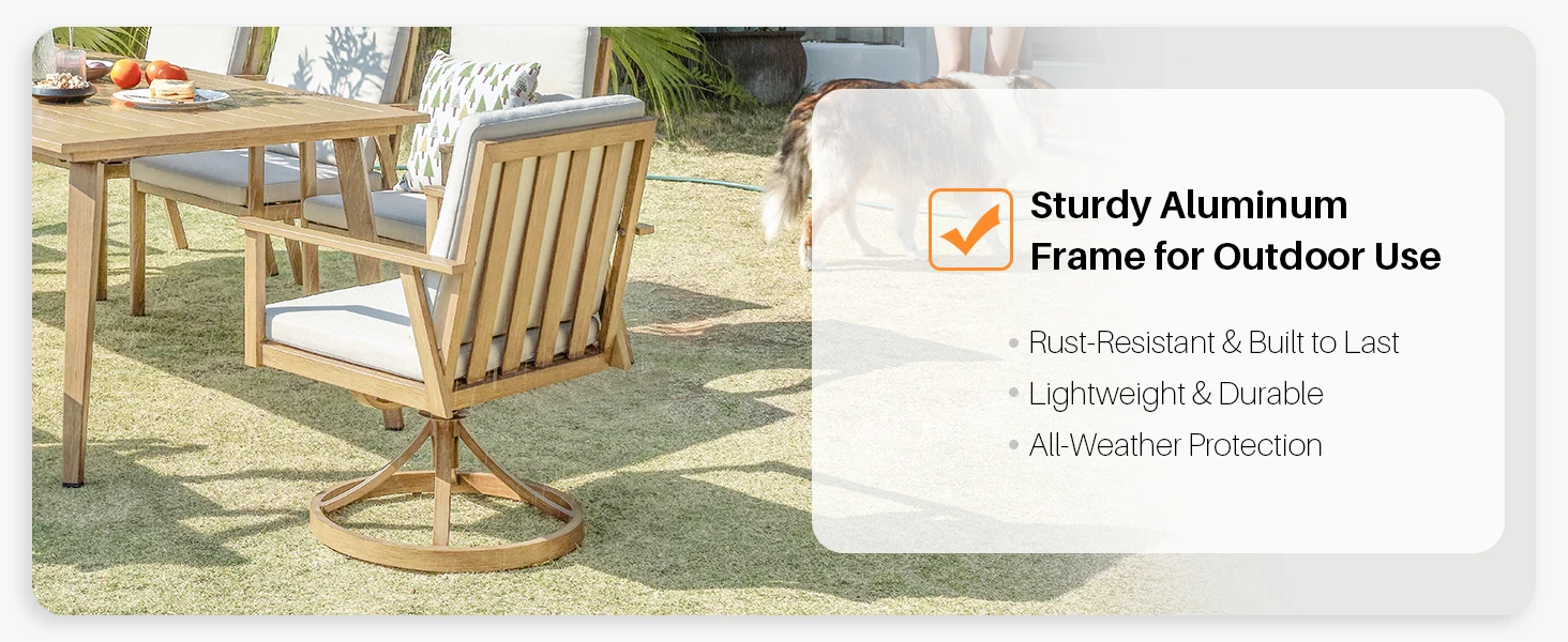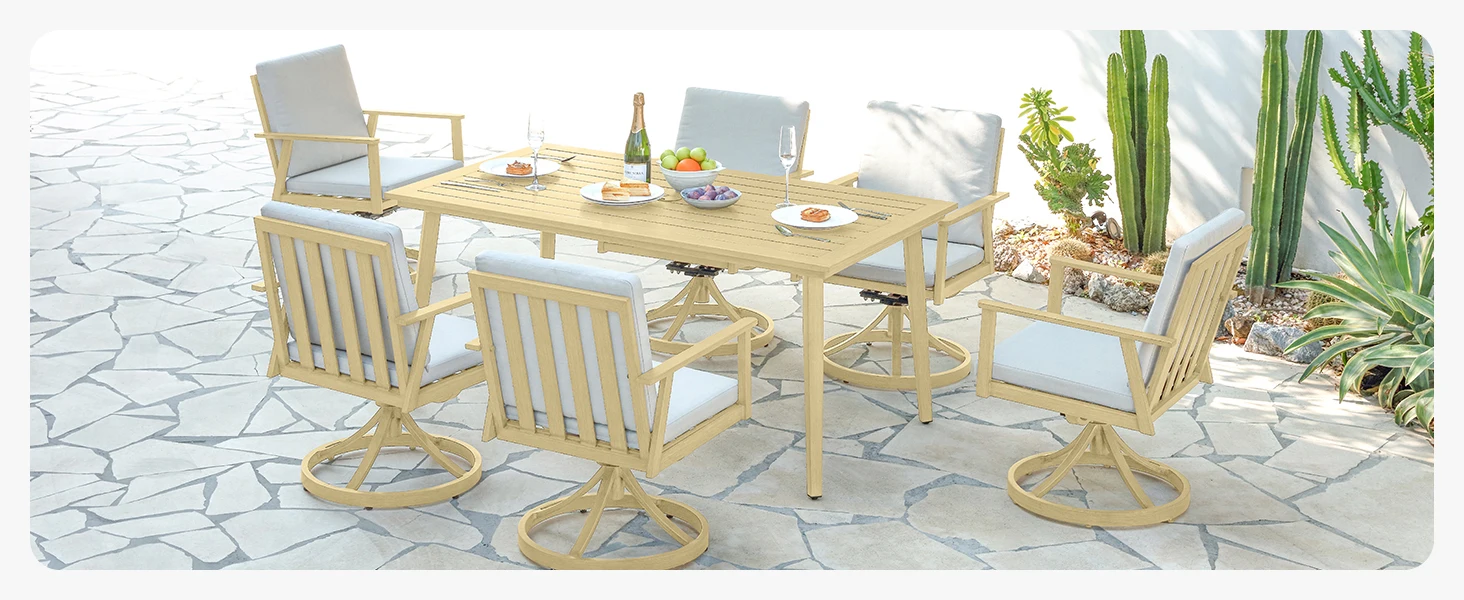 Smooth 360° Rotation for Effortless Flexibility – Turn with ease to follow the conversation, admire your surroundings, or shift to shade without getting up, thanks to a reinforced swivel base that rotates steadily even on uneven patios or lawns.