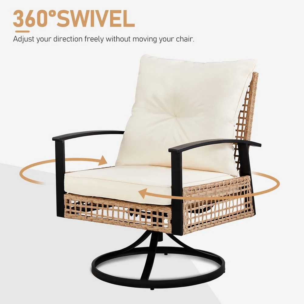 Set of 3 In/Outdoor Garden Swivel Rocker Patio Chair and Table 360Degrees Yellow