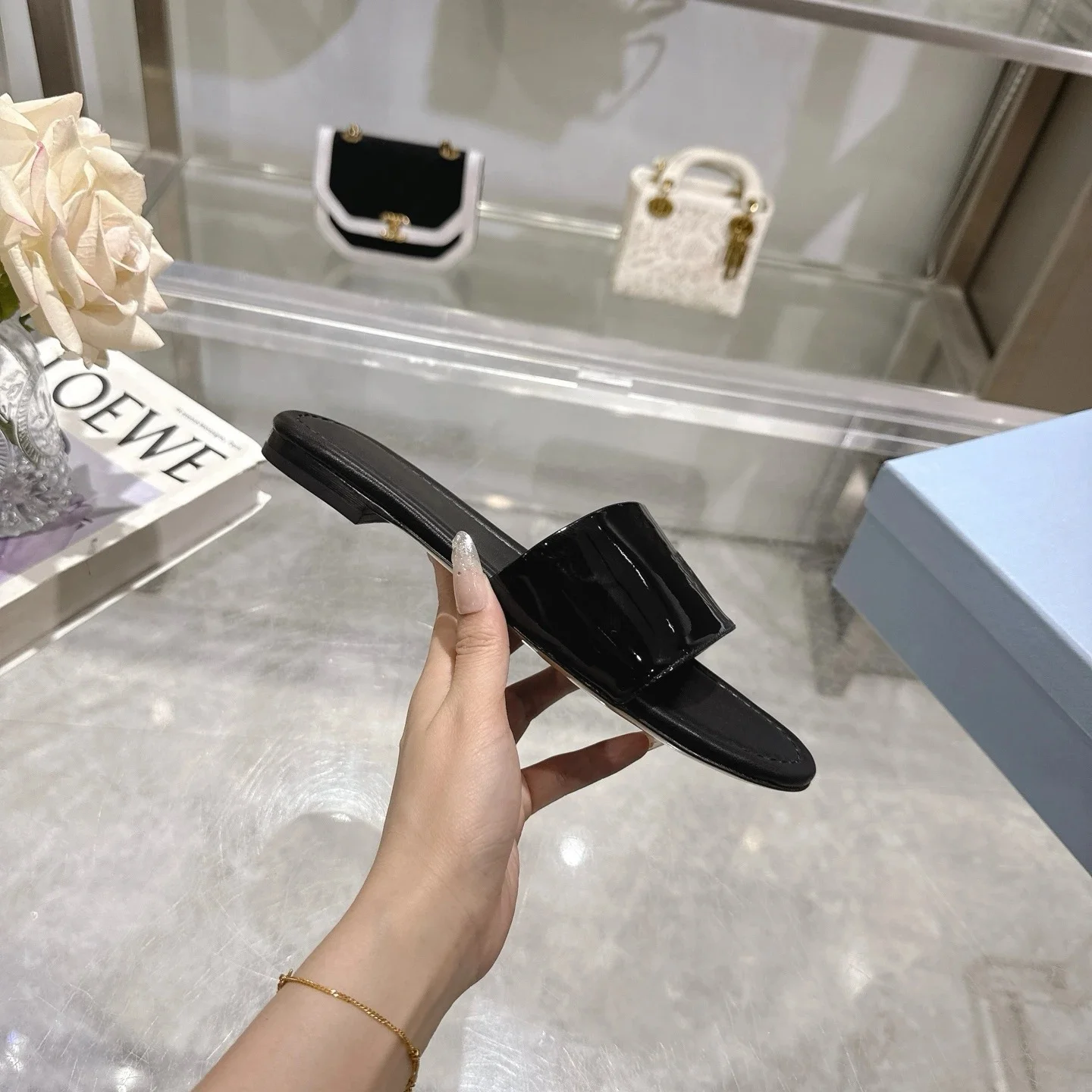Shoes Women Size35-41 Genuine Leather Slippers Med Heels Butterfly Knot Summer Slides Prints Designer Shoes Zapatillas De Mujer