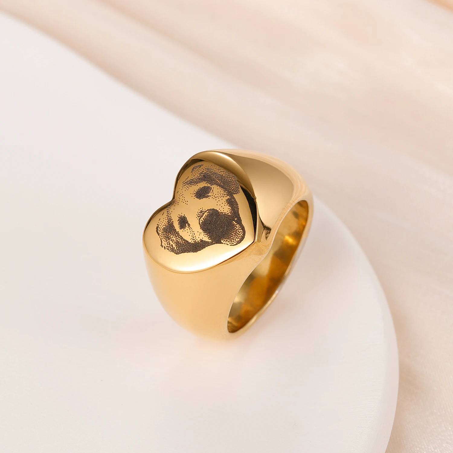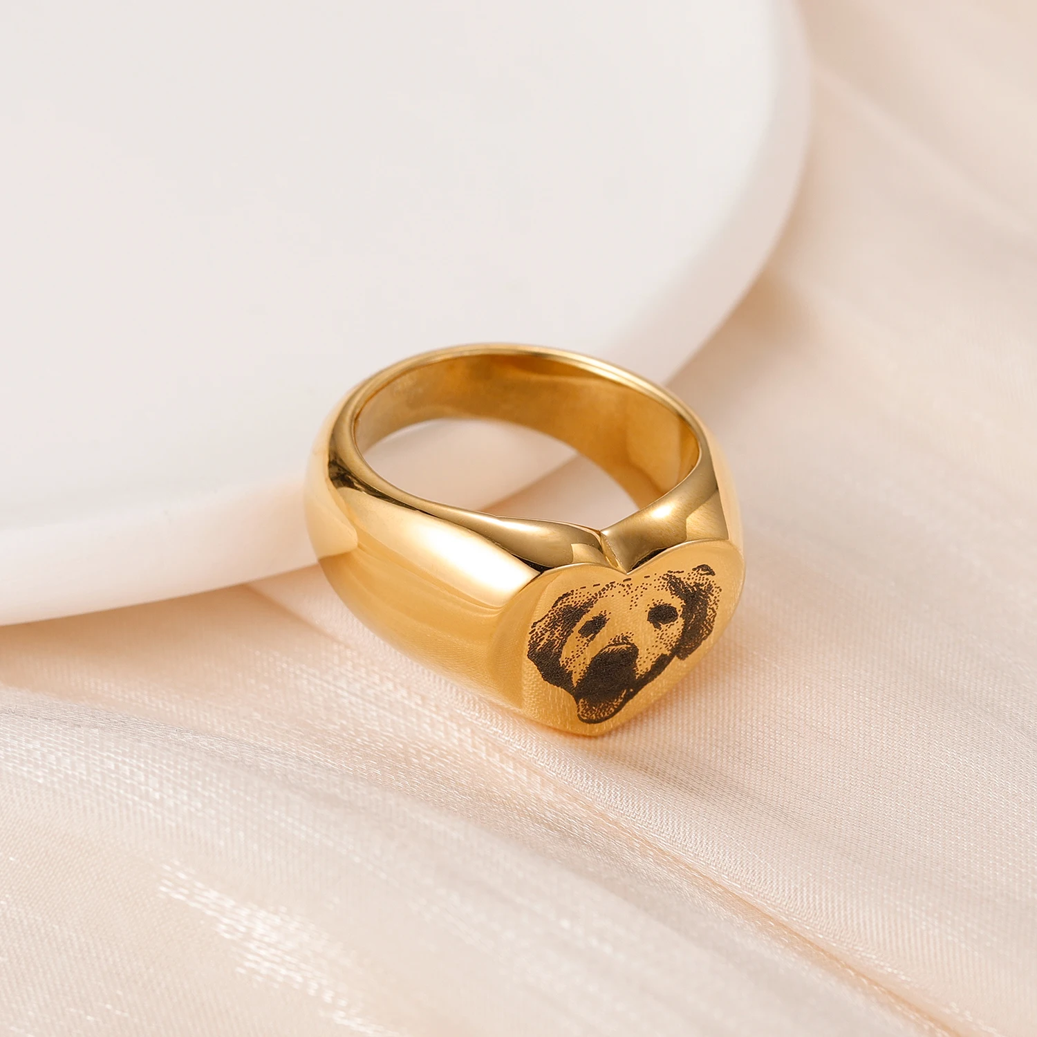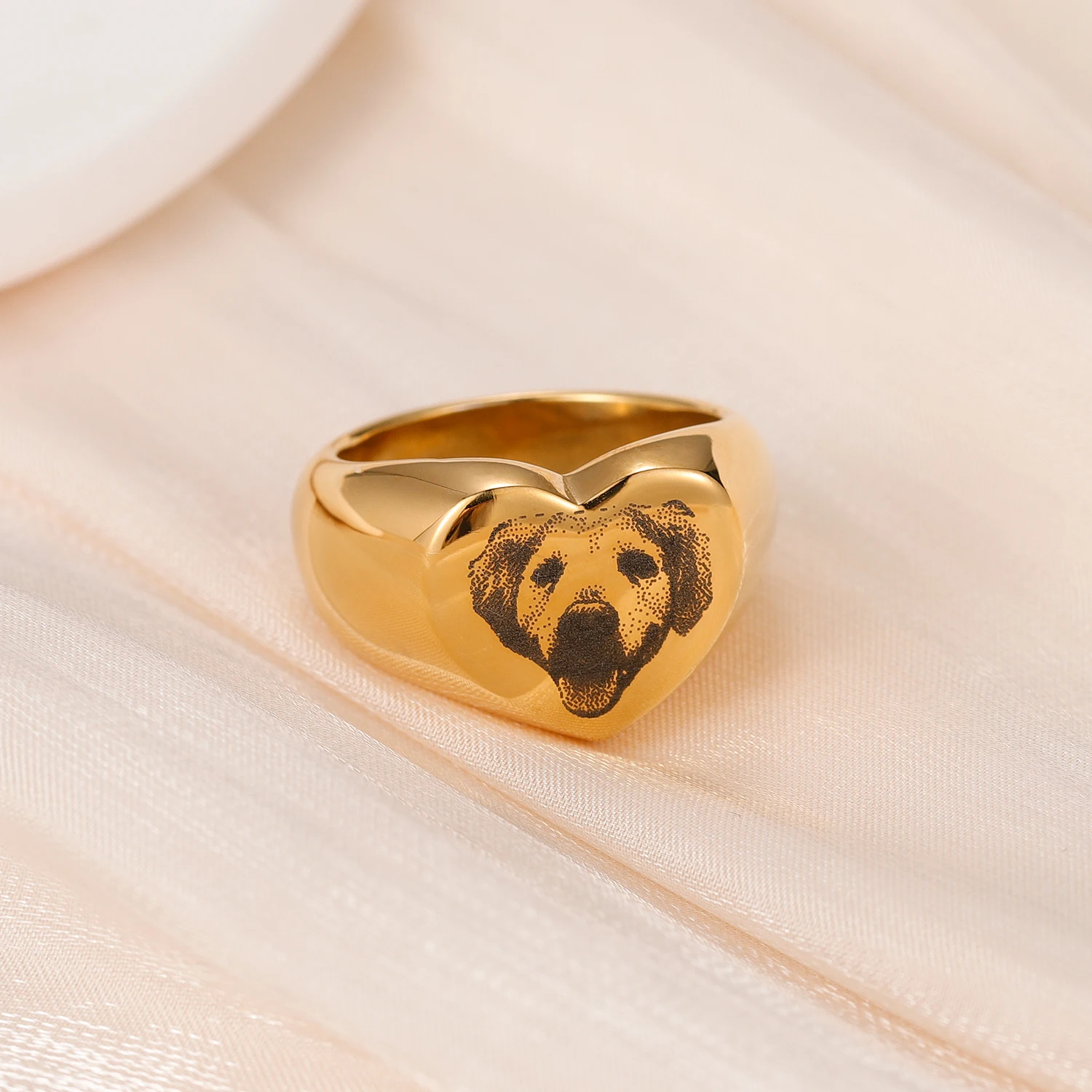 Signet Custom Pet Portrait Ring Personalized Minimalist Rings Gifts for Pets Dog Ring Signet Ring Jewelry Dog Pet Lover Gifts