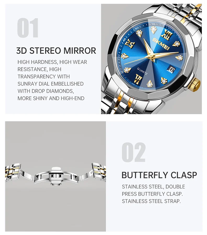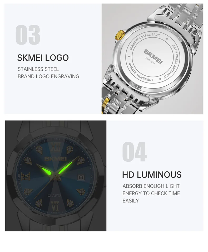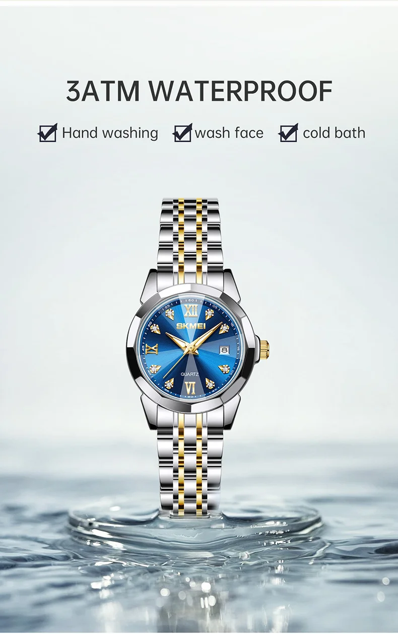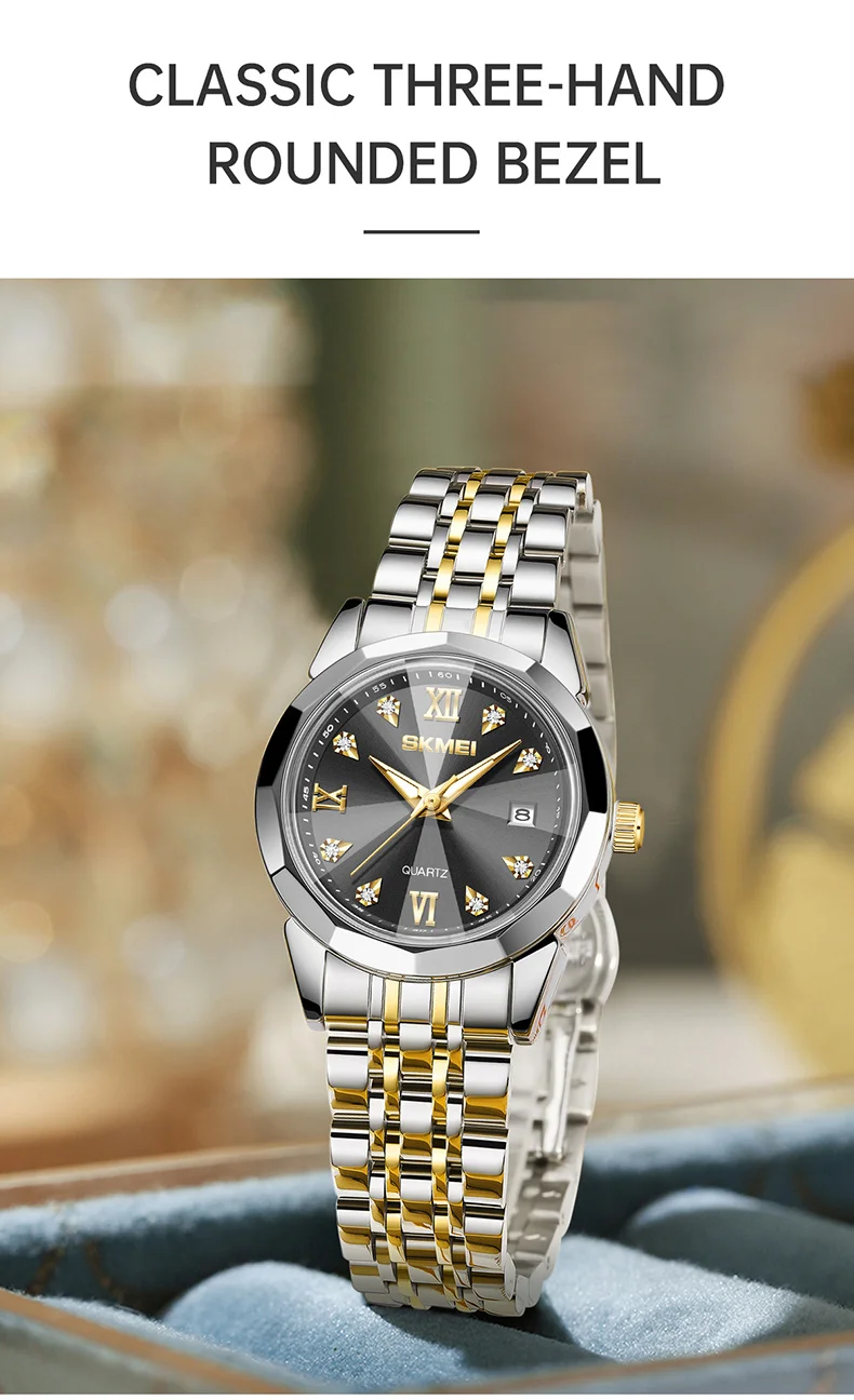 SKMEI Luxury Quartz Wristwatch For Women Stainless Steel Waterproof All-Steel Wristwatch Ladies Casual Week Date Waterproof