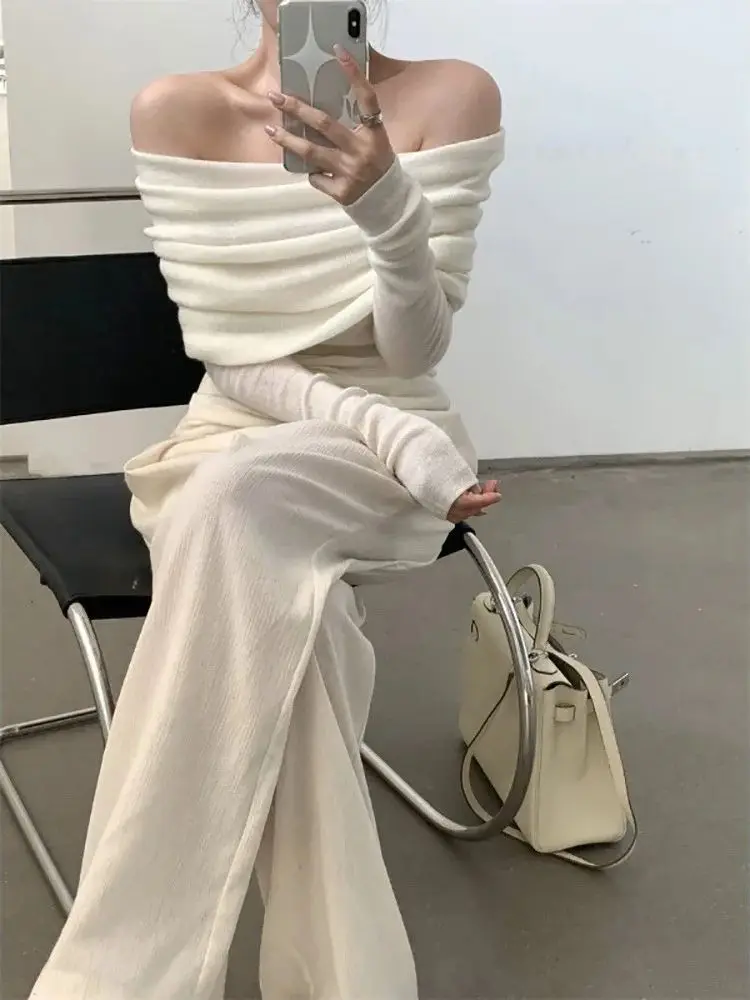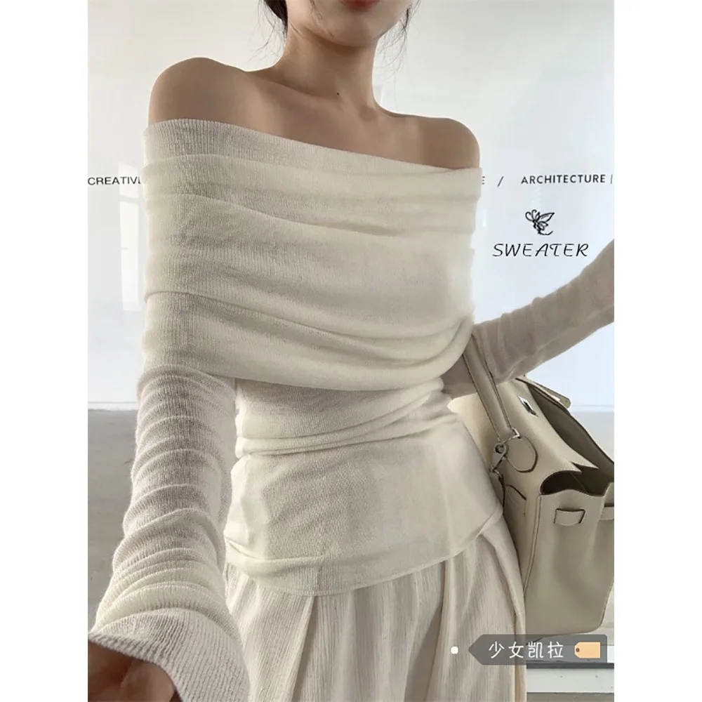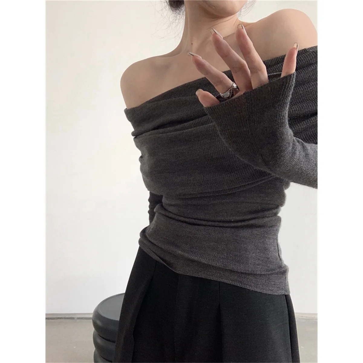 Slash Neck Sweater Women Tops Knitted Slim Basic All-match Sexy Elegant Off Shoulder Autumn Winter Long Sleeve Pullovers Female
