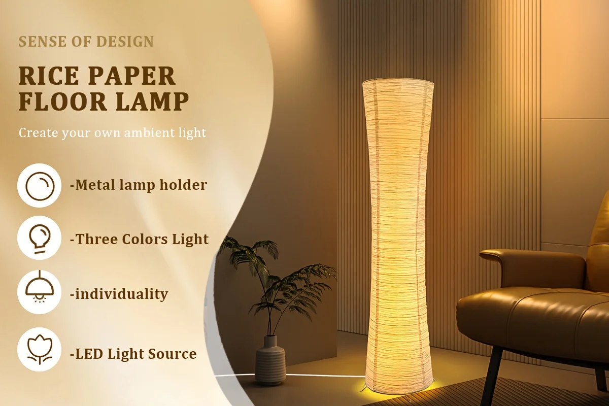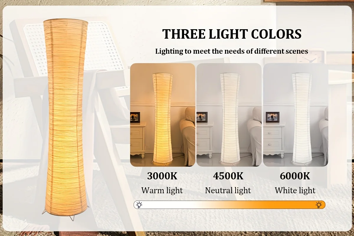Soft Light Floor Lamp, 42 Inches High, Modern Minimalist Design, LED Soft Light With Warm Light 3000K, Paper Lamp Shade