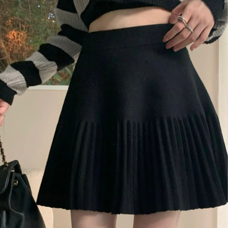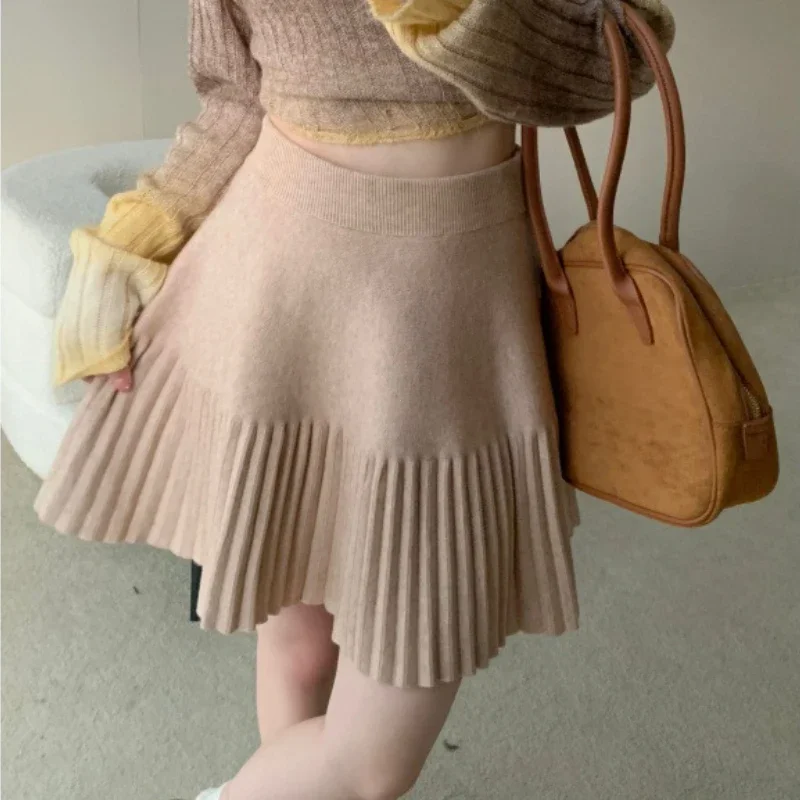 Spicy Girl Solid Color Versatile Knit Skirt Women's Early Autumn 2024 New Style High-Waisted Loose-Fit Slimming A- Line Mini Dre