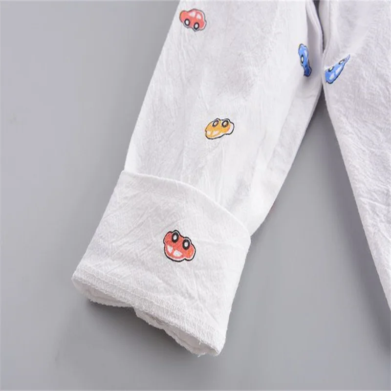 Spring and autumn toddler boy casual printing small V-neck shirt+loose jeans suit stylish and versatile.