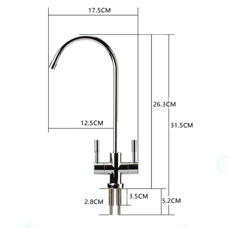 Stainless Steel Double Outlet Faucet Set Water purifier Tap Kitchen RO Faucet Double Inlet And Outlet tap 1/4 Inch Connect Hose