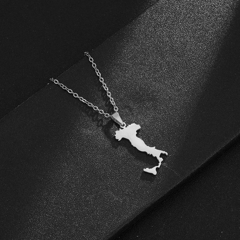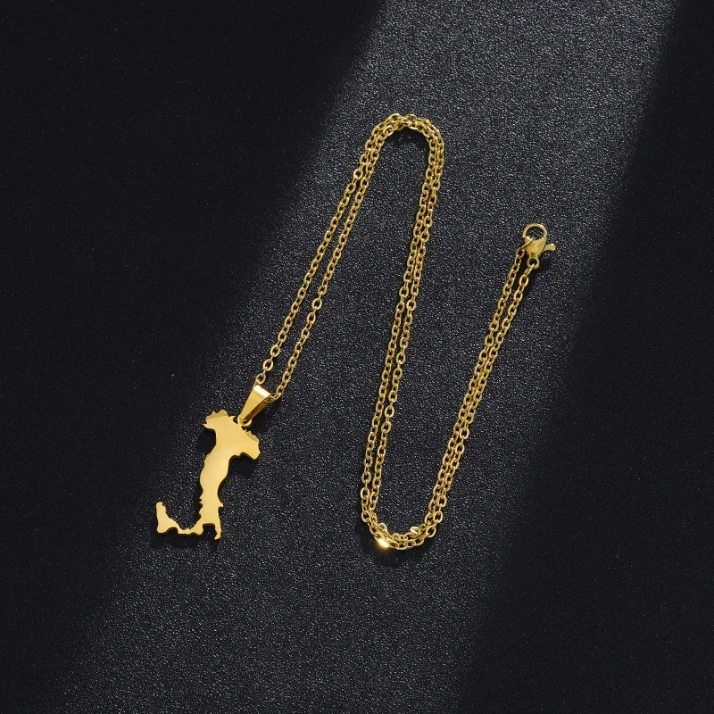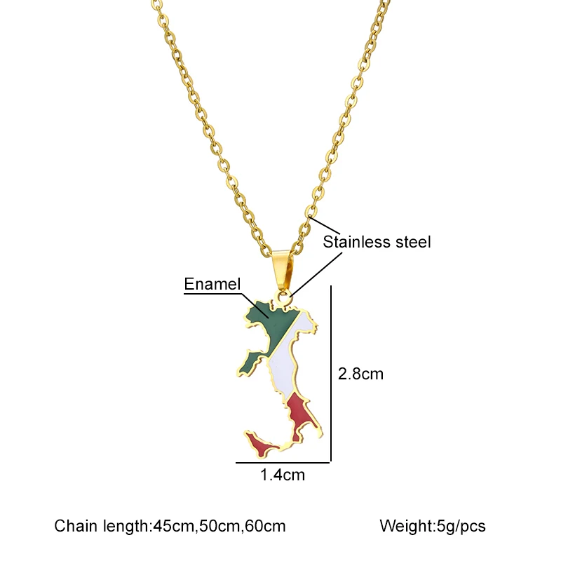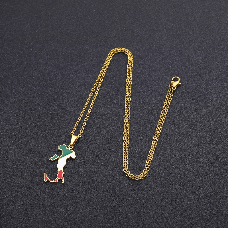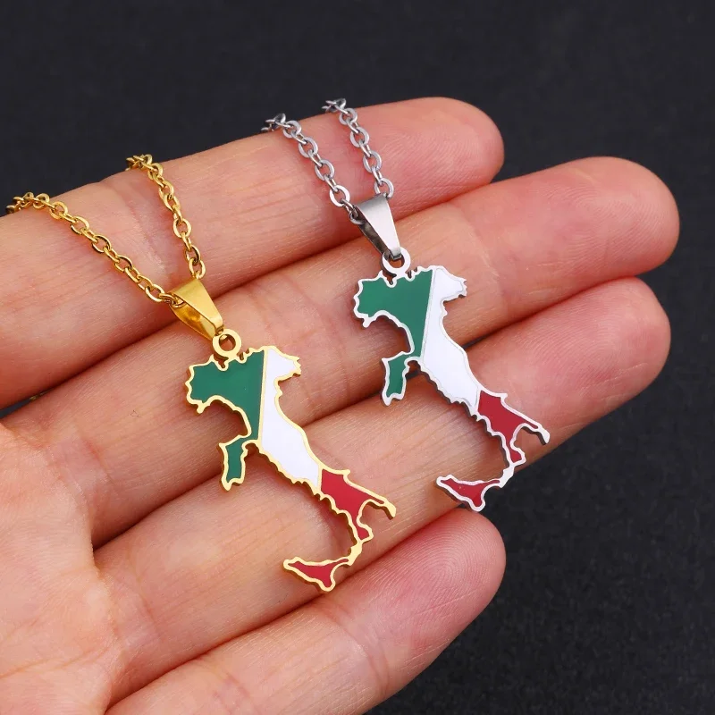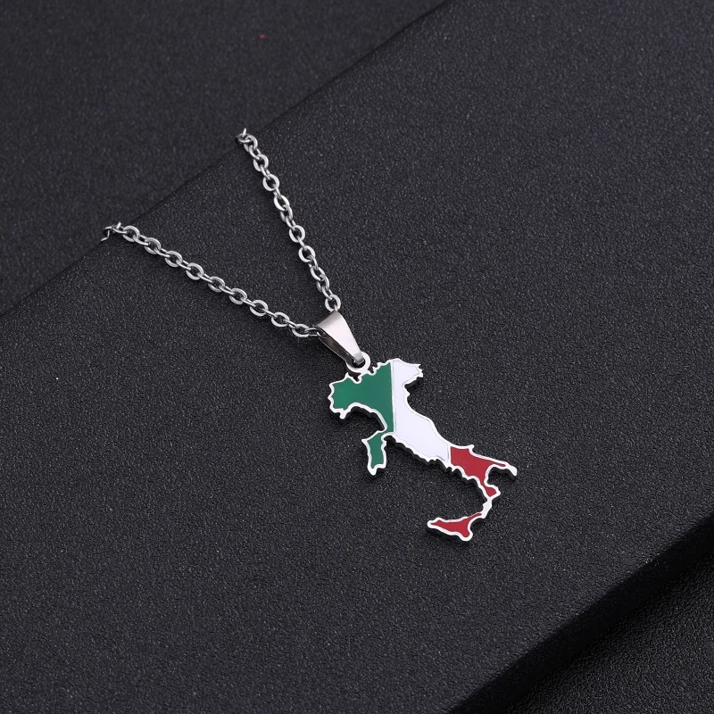 Stainless Steel Italy Map Flag Pendant Necklace Gold Silver Color Men Women Ethnic Map Jewelry Patriotic Gift