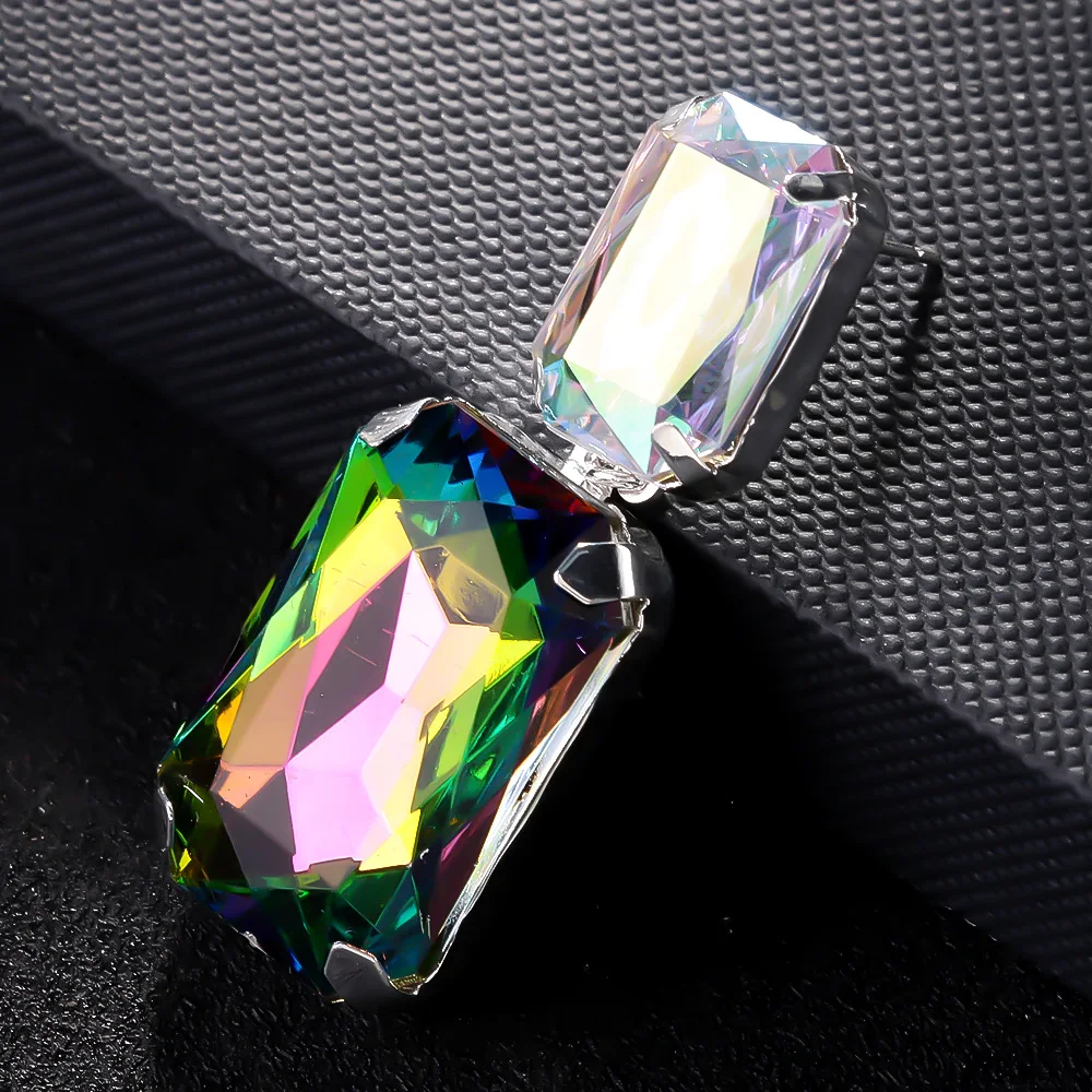 Stonefans Fahion AB Crystal Rectangular Dangle Earrings for Women 2024 Exaggerated Large Earrings Rhinestone Square Ear Jewelry