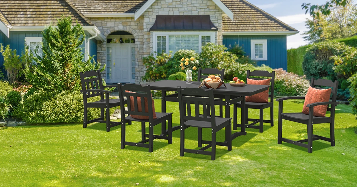 7 PCS Patio Dining Set: Indulge in the luxury of a complete 7-piece set, comprising a table and 6 chairs, expertly constructed to withstand the rigors of outdoor use, with a sturdy load capacity of 330 lbs, making them perfect for both intimate dinners and festive occasions.