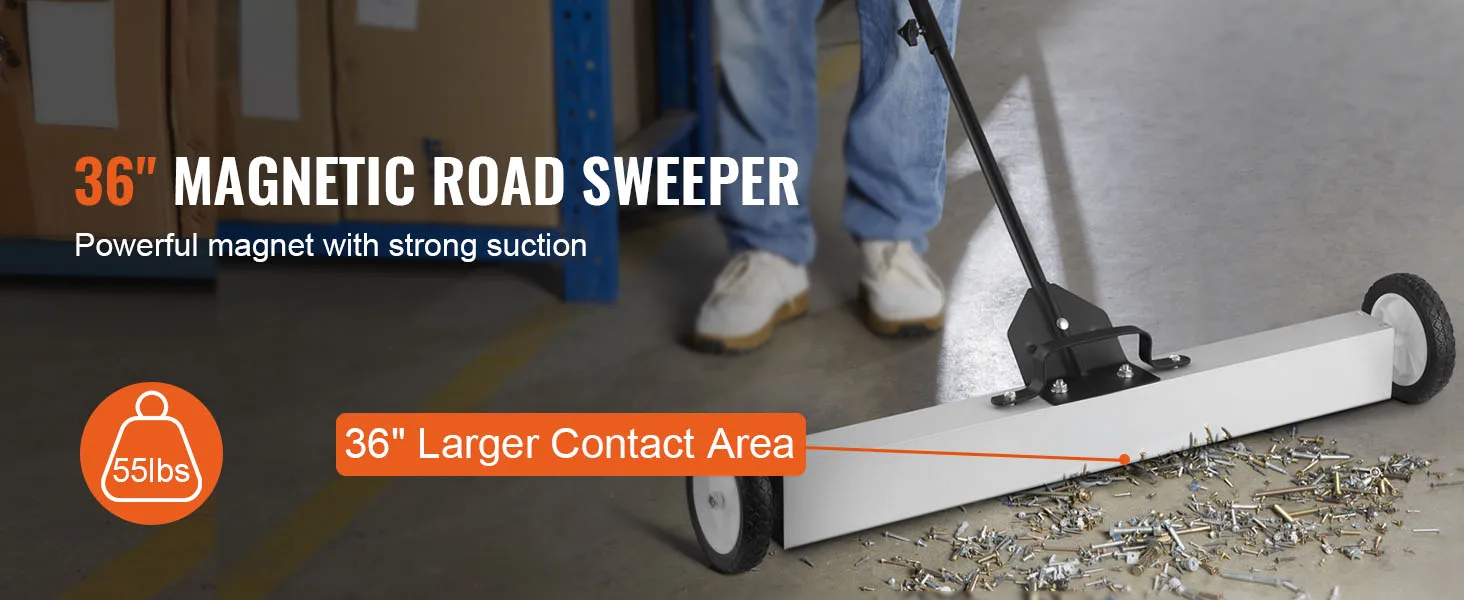 Precision Cleaning: The extra-wide magnetic rectangle of the 36-inch sweeper magnet ensures thorough coverage and efficient collection of metal debris. Its superior magnetic strength attracts even small metal particles, leaving the worksite clean and free of potential hazards.