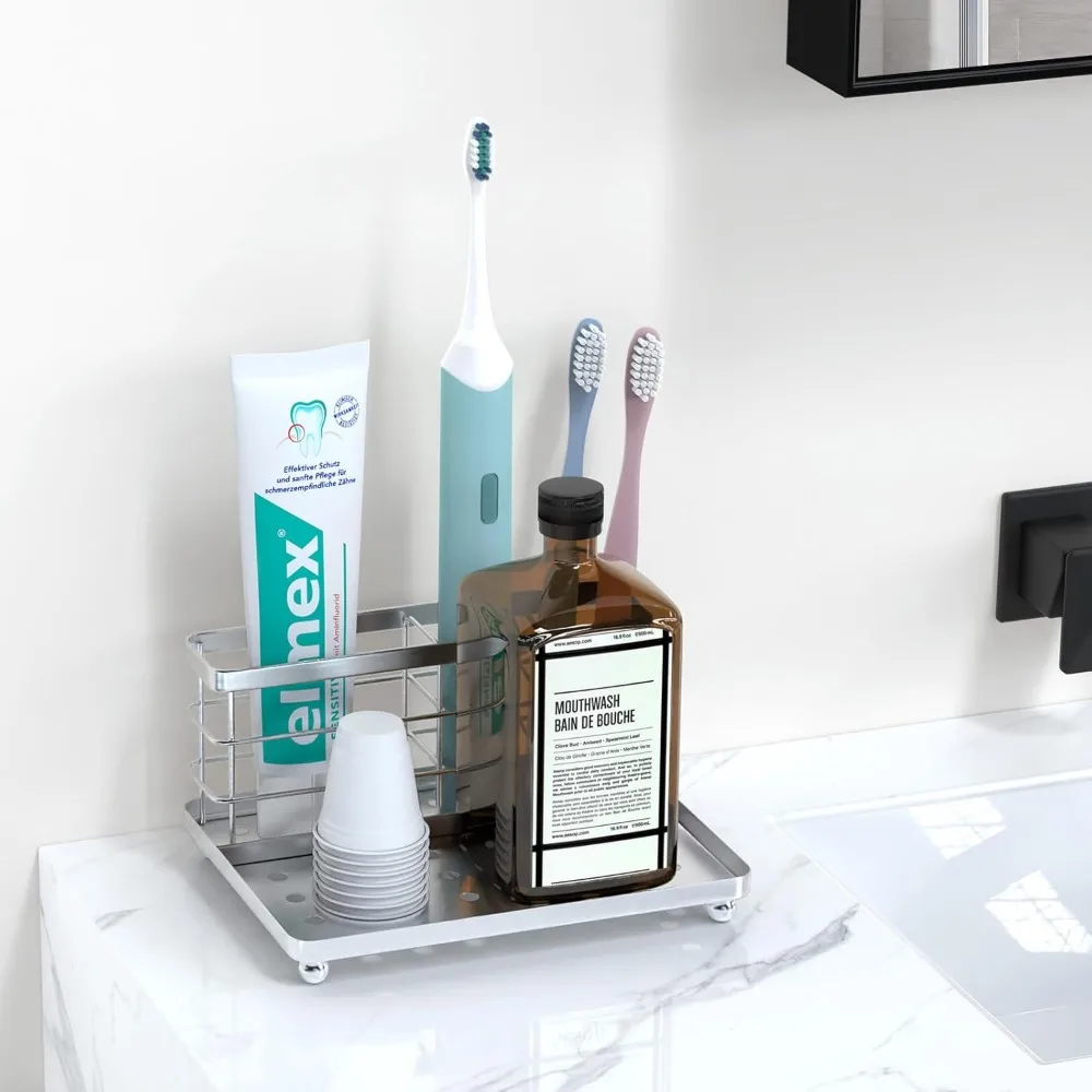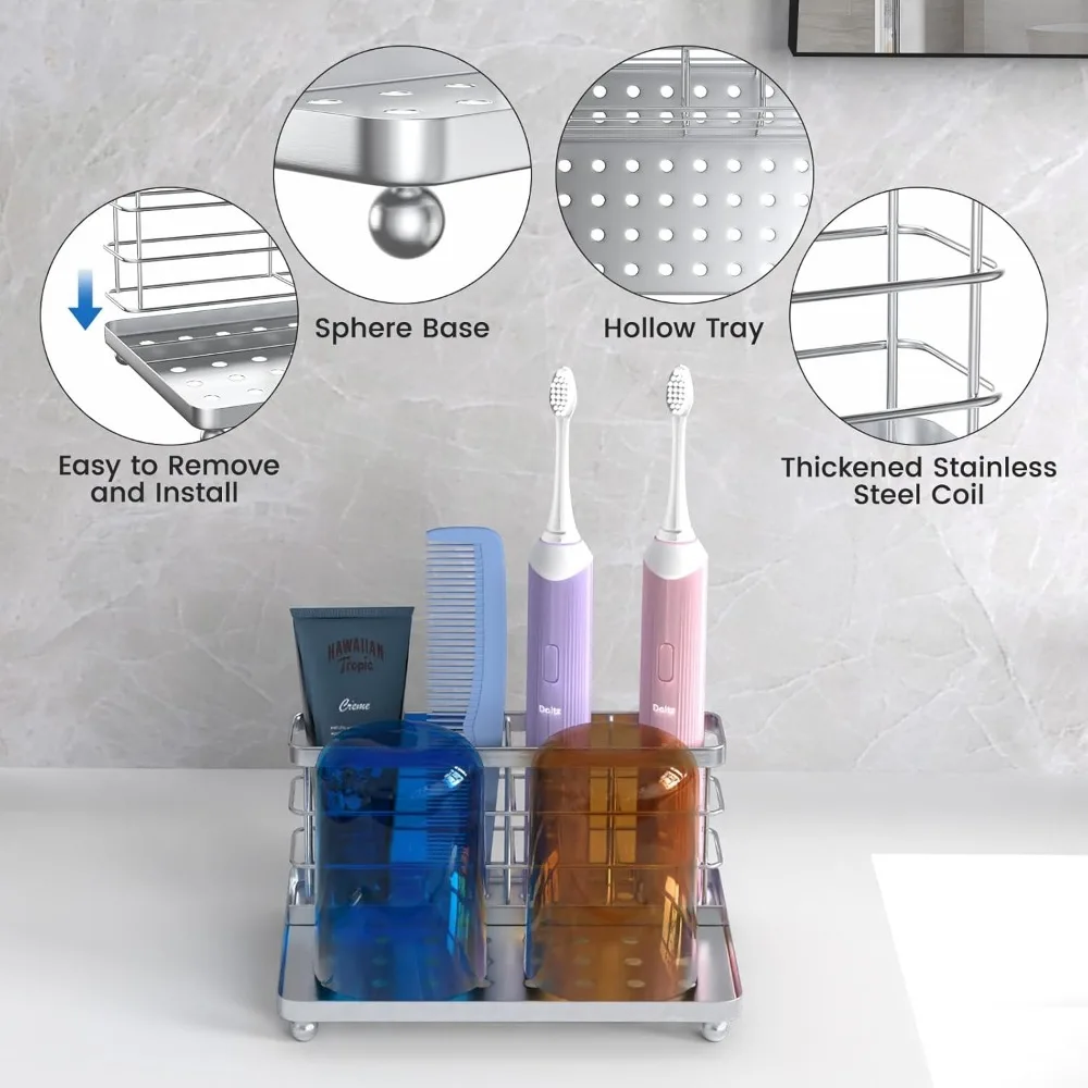 Toothbrush Holders for Bathroom, Toothbrush Holder with Tray, Stainless Steel Holder for Toothbrush Toothpaste, Tooth Brushing