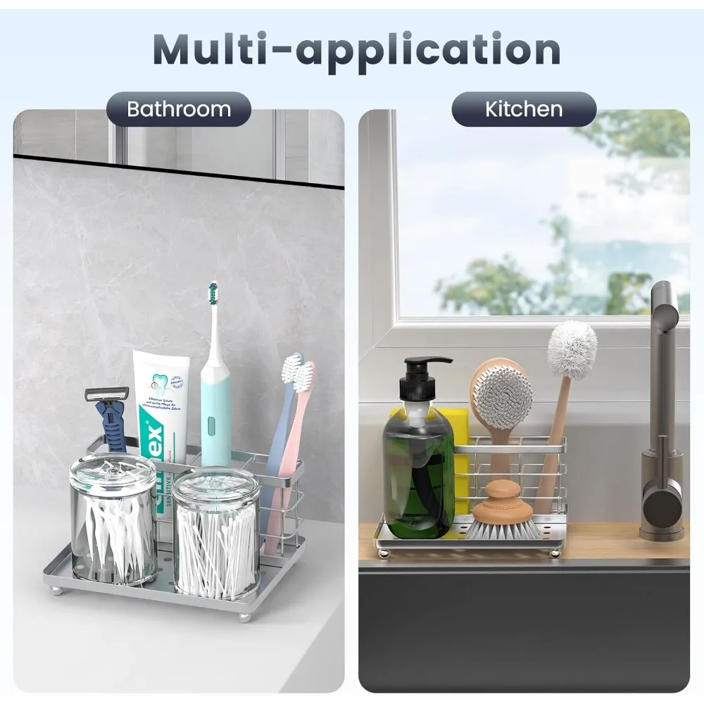 - Multi-functional Toothbrush Holder: toothbrush holder can provide enough storage space for toothbrush, toothpaste, bathroom cup, soap dispenser, cotton swab holder, suitable for putting in bathroom vanity to store bathroom essentials, also can be put in the kitchen sink to organize sponge, dish brushes, sink stopper, etc.