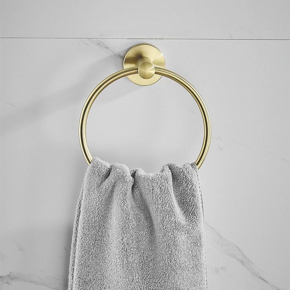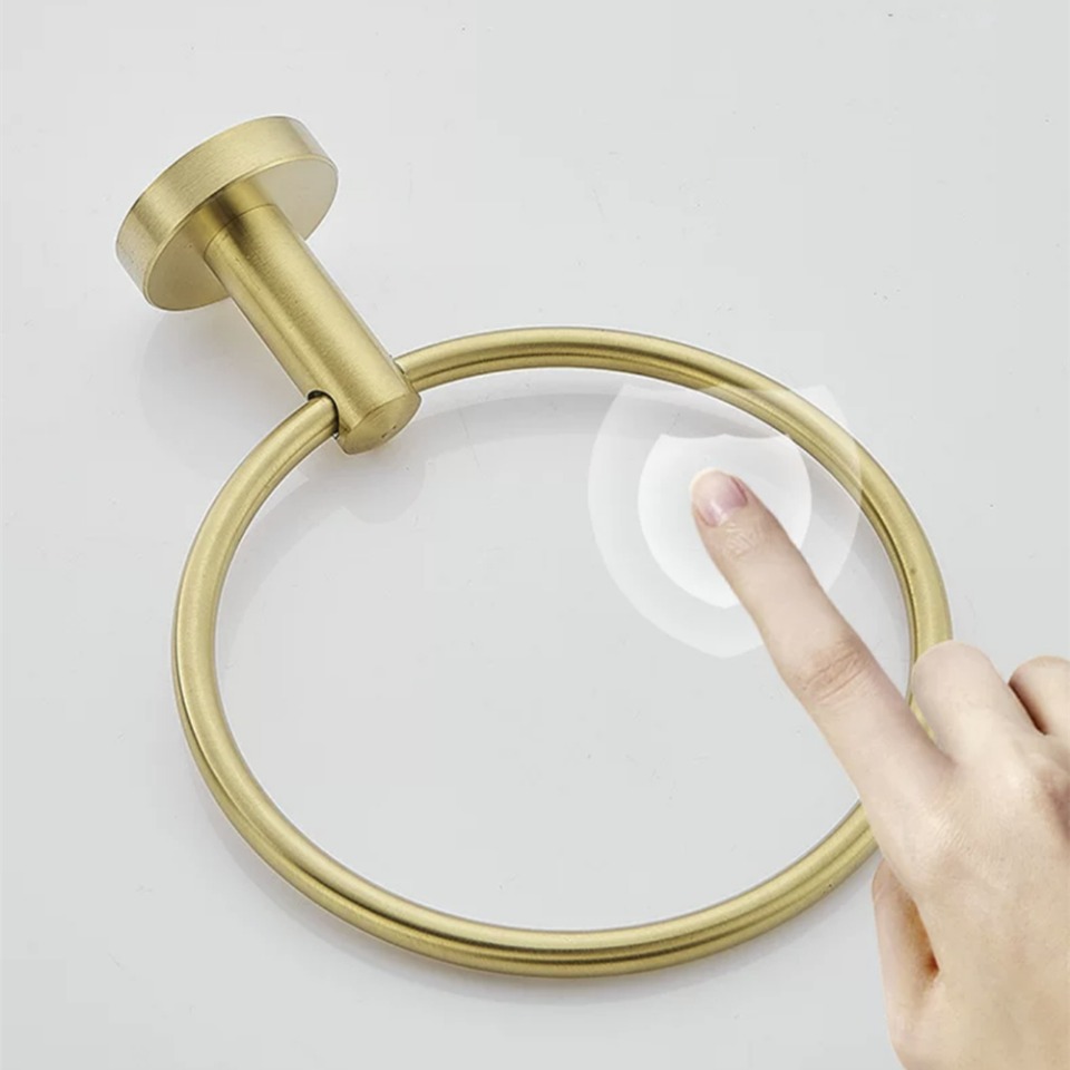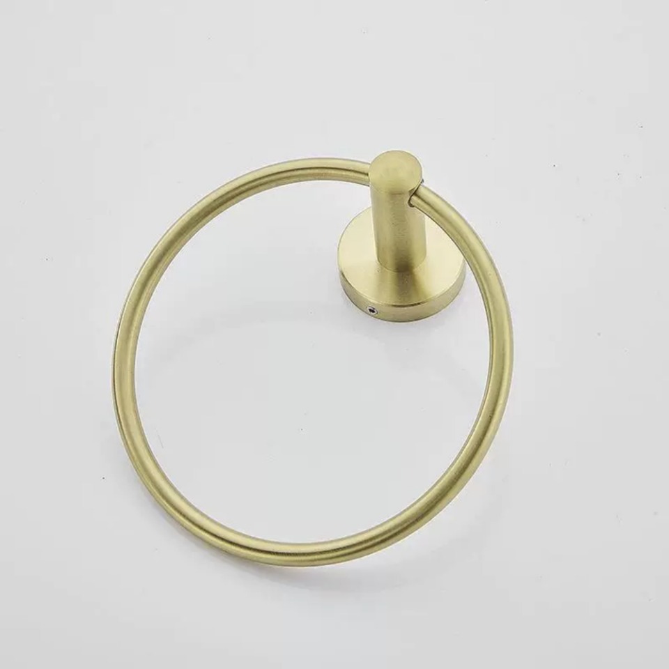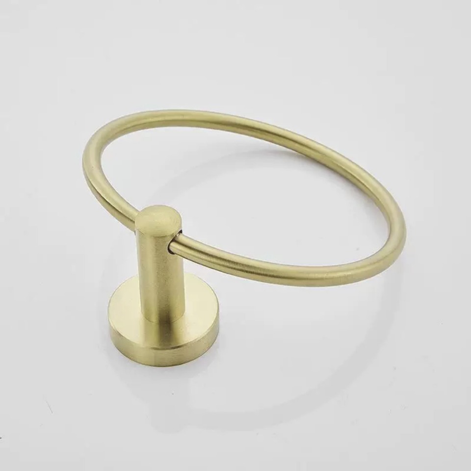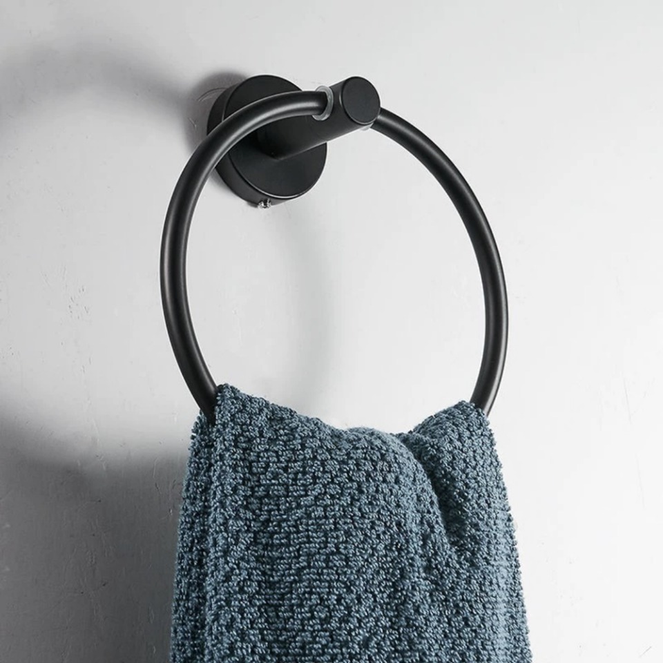 Towel Ring Black/Brushed Gold Stainless Steel Wall Hanging Drill Hole Towel Storage Rack Bathroom Accessories Round Towel Holder