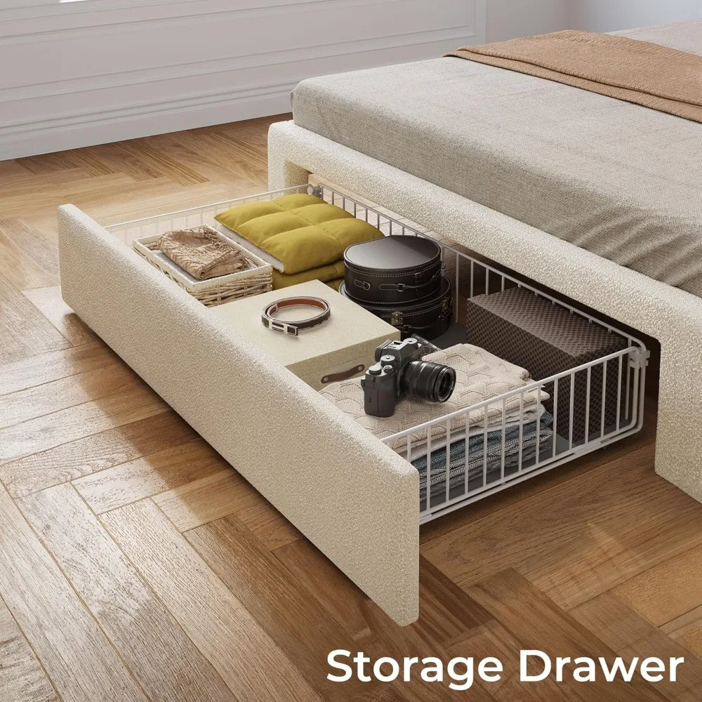 • Upholstered Design Modern Bed: Featuring classical off white lambswool upholstery that is skin-friendly, breathable, and wear-resistant, this bed adds a sophisticated touch to any bedroom. Combining elegance with functionality, this upholstered bed frame is perfect for modern bedrooms