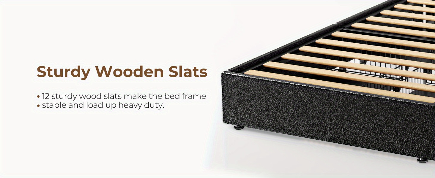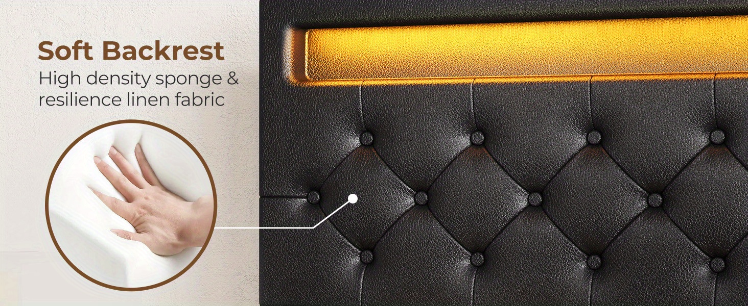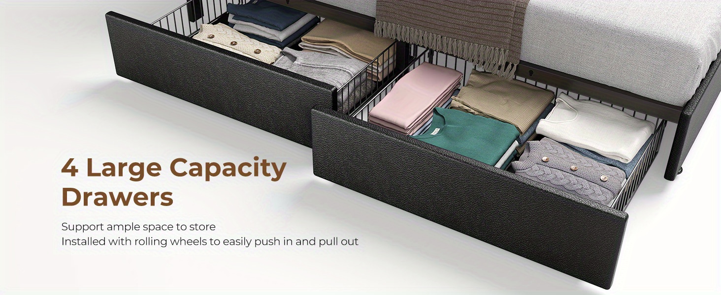 Twin/Full/Queen Size Bed Frame Avaliable, Bed Frame With Charging Station And LED Lights, Upholstered PU Leather Bed With Adjustable Headboard And 4 Storage Drawers, No Box Spring Needed, Easy Assembly