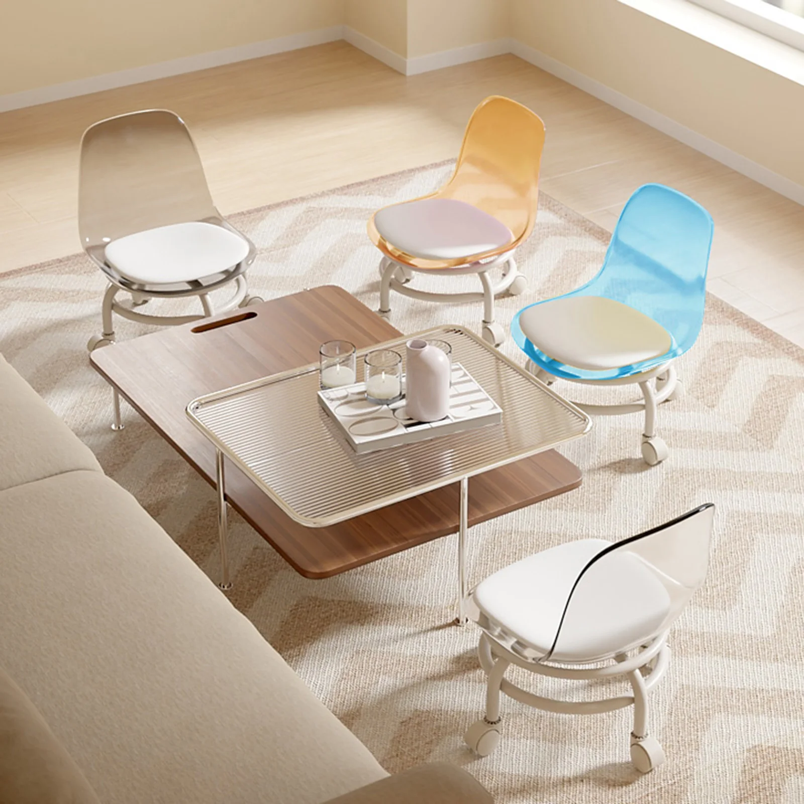 Universal wheel small stool household pulley low stool backrest strong and durable portable outdoor mobile small bench