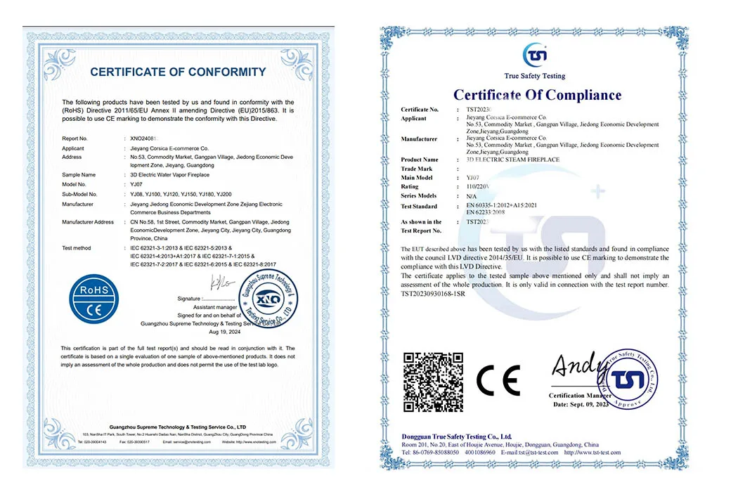 Unlike traditional fireplaces, our innovative technology uses water vapor and LED lighting to create stunningly realistic flames that you can touch and even adjust the color of with your remote control. But here's the best part - our eco-friendly flames don't produce any humidity or condensation, making them safe and comfortable for any home. Experience the magic of JANO 3D electric fireplace today!