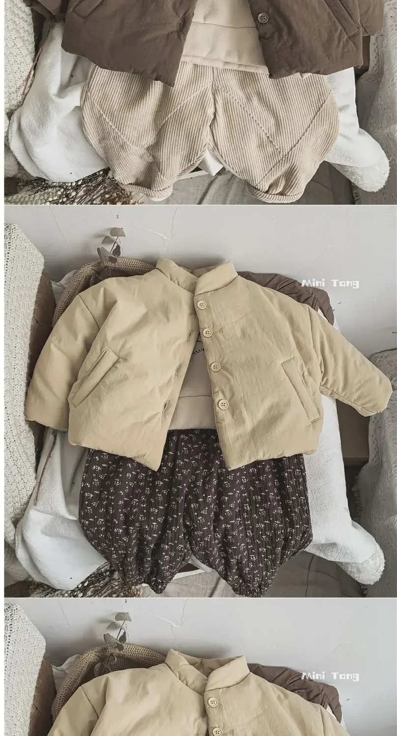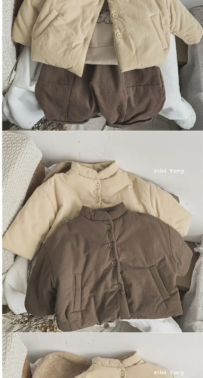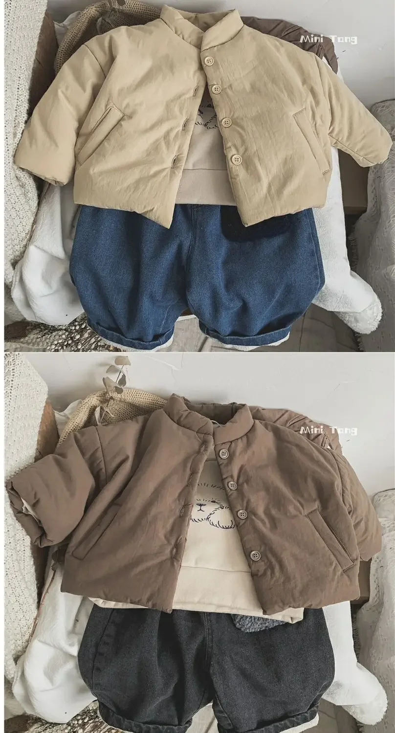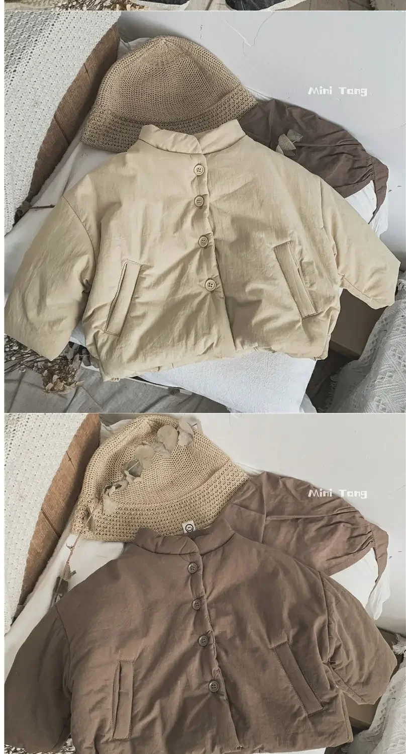 Winter Kids Jacket Thicken Cotton Warm Boys Girls Winter Coat 2024 Solid Color Children Retro Style Outwear Windproof Warm Coat