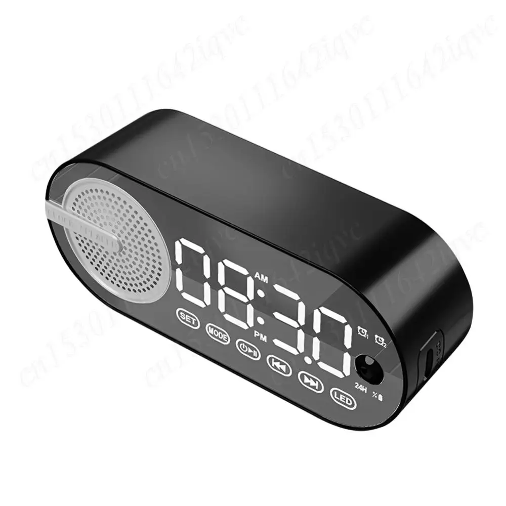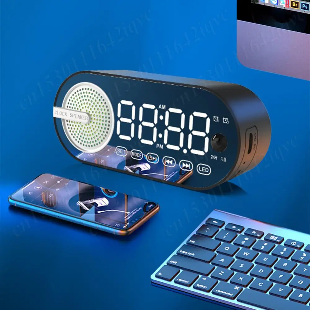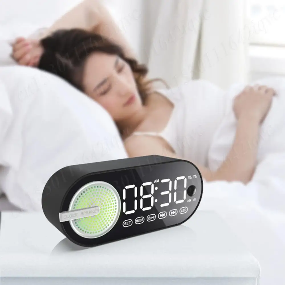 Wireless Bluetooth Speaker Small Digital Alarm Clock LED Display with Dual Alarms Human-Activated Living Room Office Decoration
