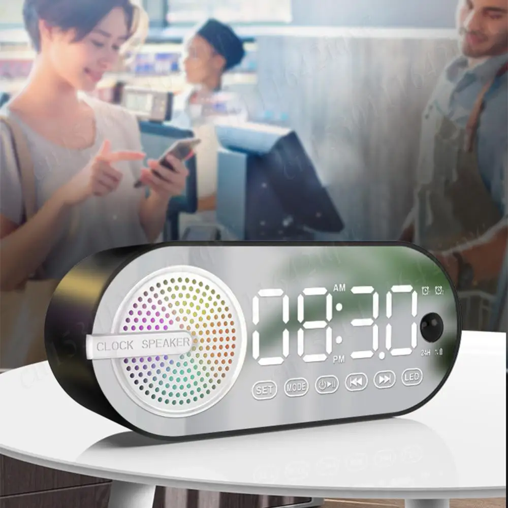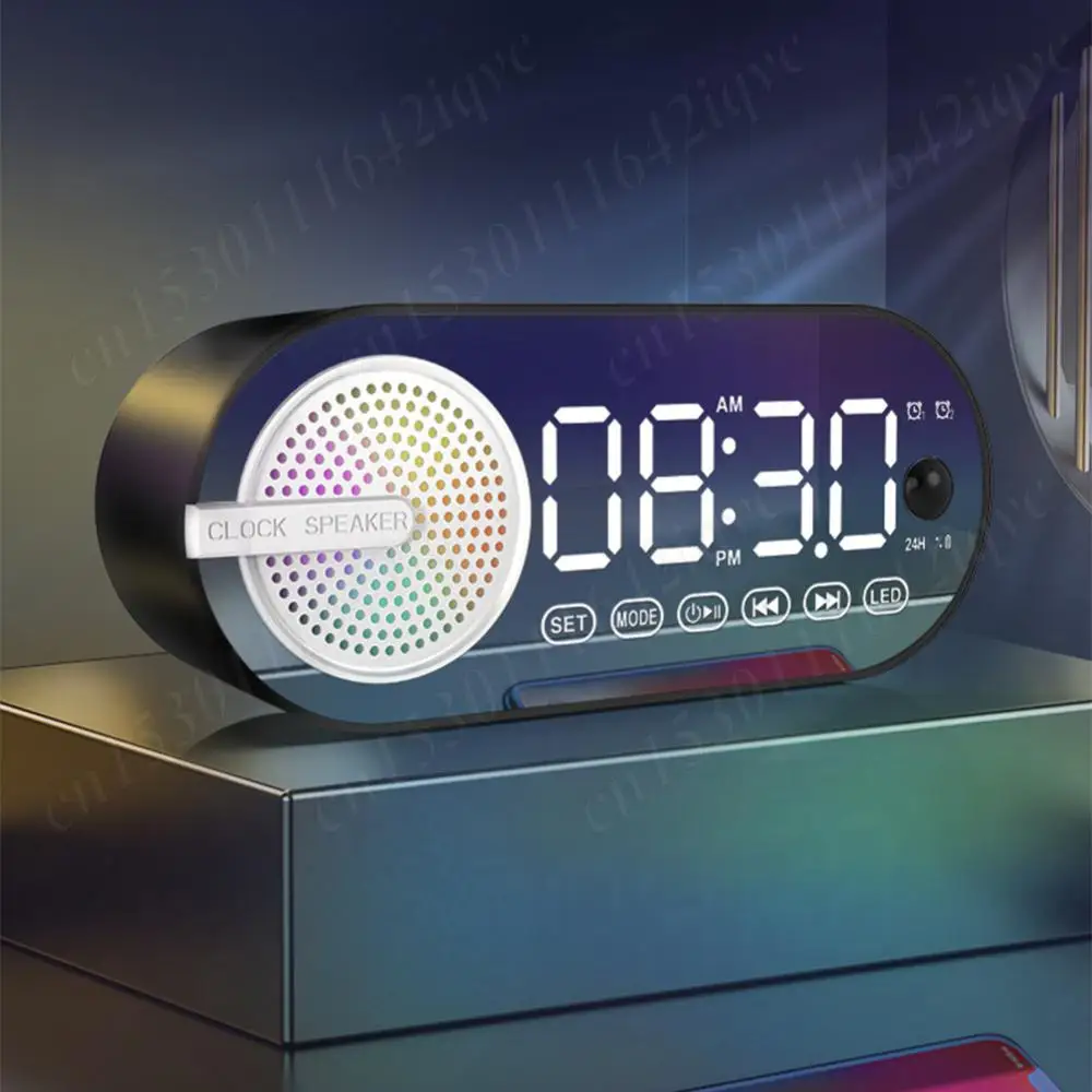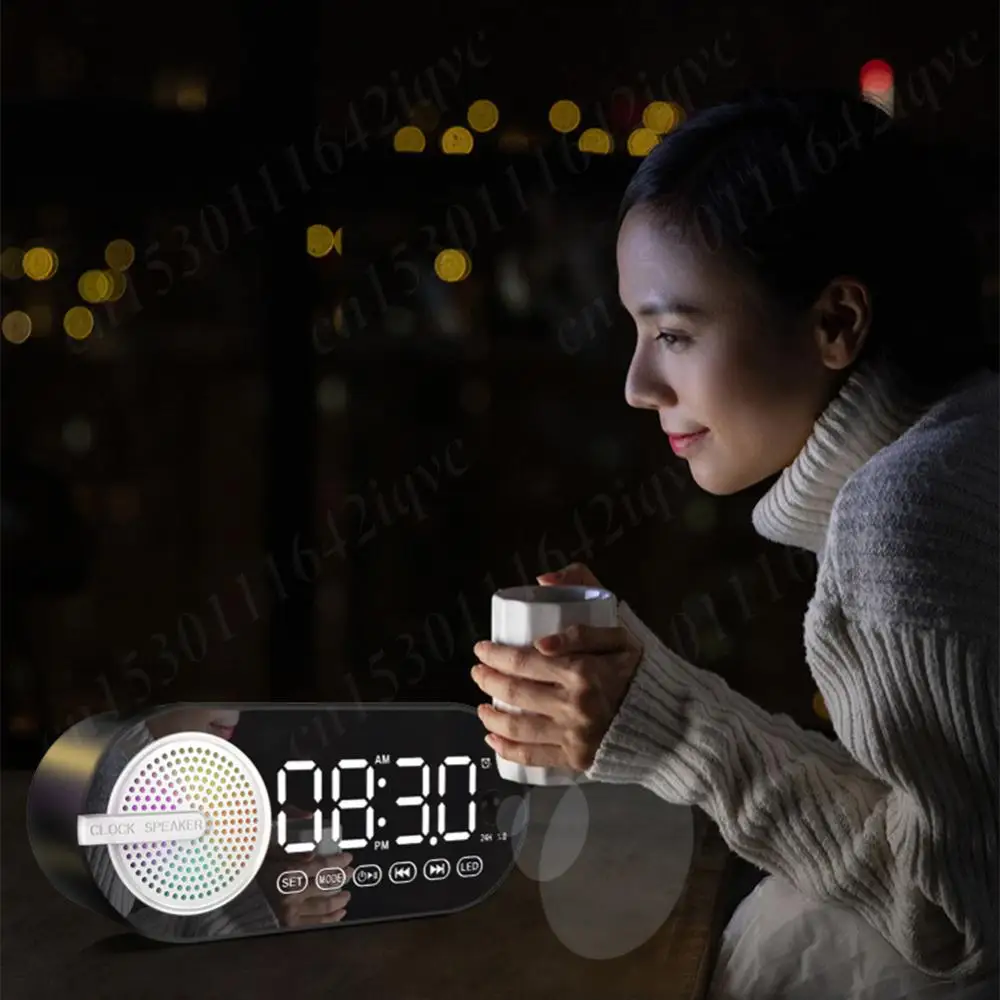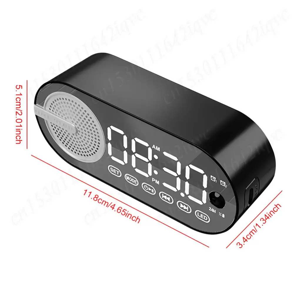 Wireless Bluetooth Speaker Small Digital Alarm Clock LED Display with Dual Alarms Human-Activated Living Room Office Decoration