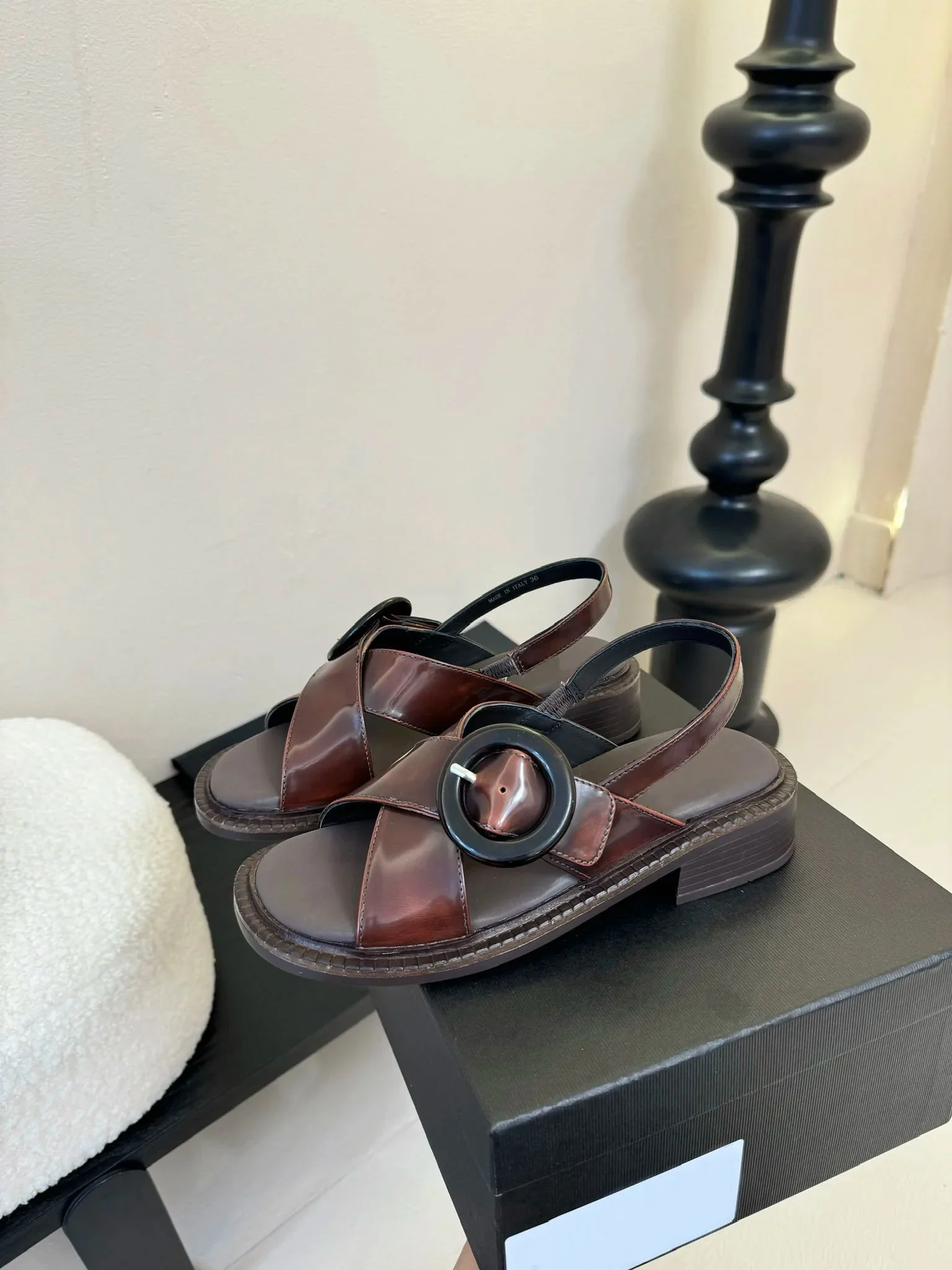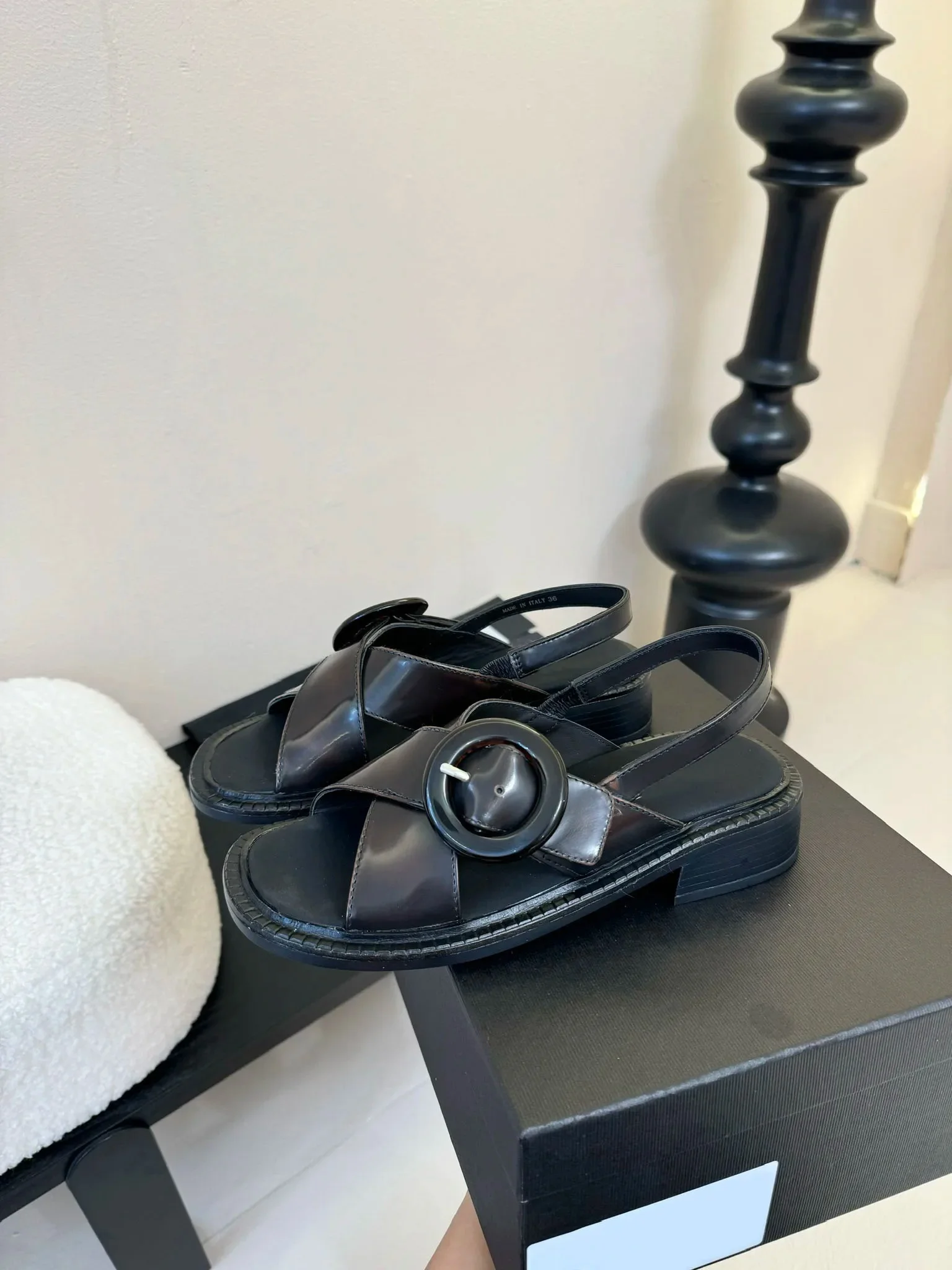 Women's Shoes Brushed Leather Sandals With Buckle Runway Style