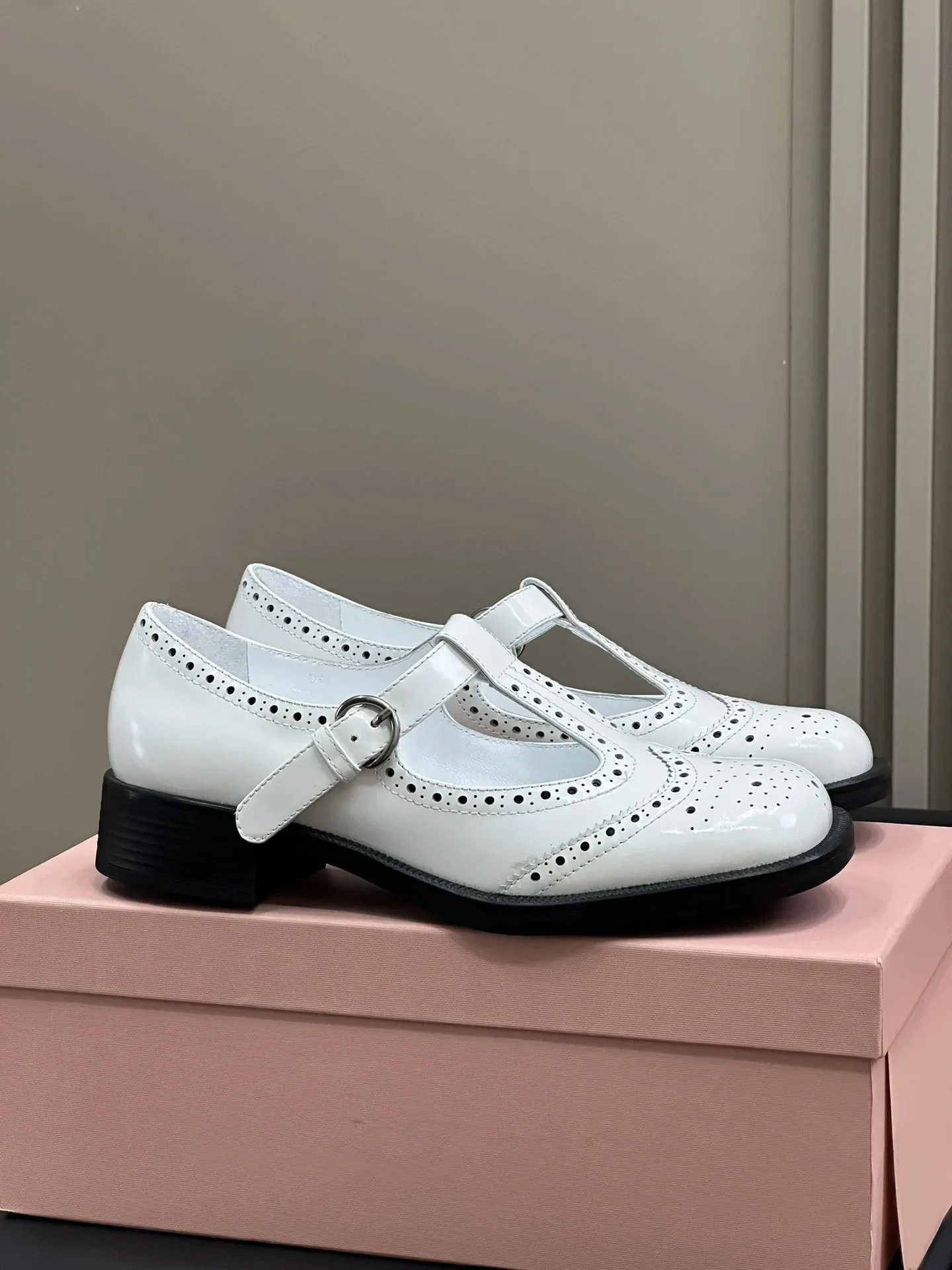 Women's Shoes Mary Jane Leather T-strap Brogue Shoes Monk Strap