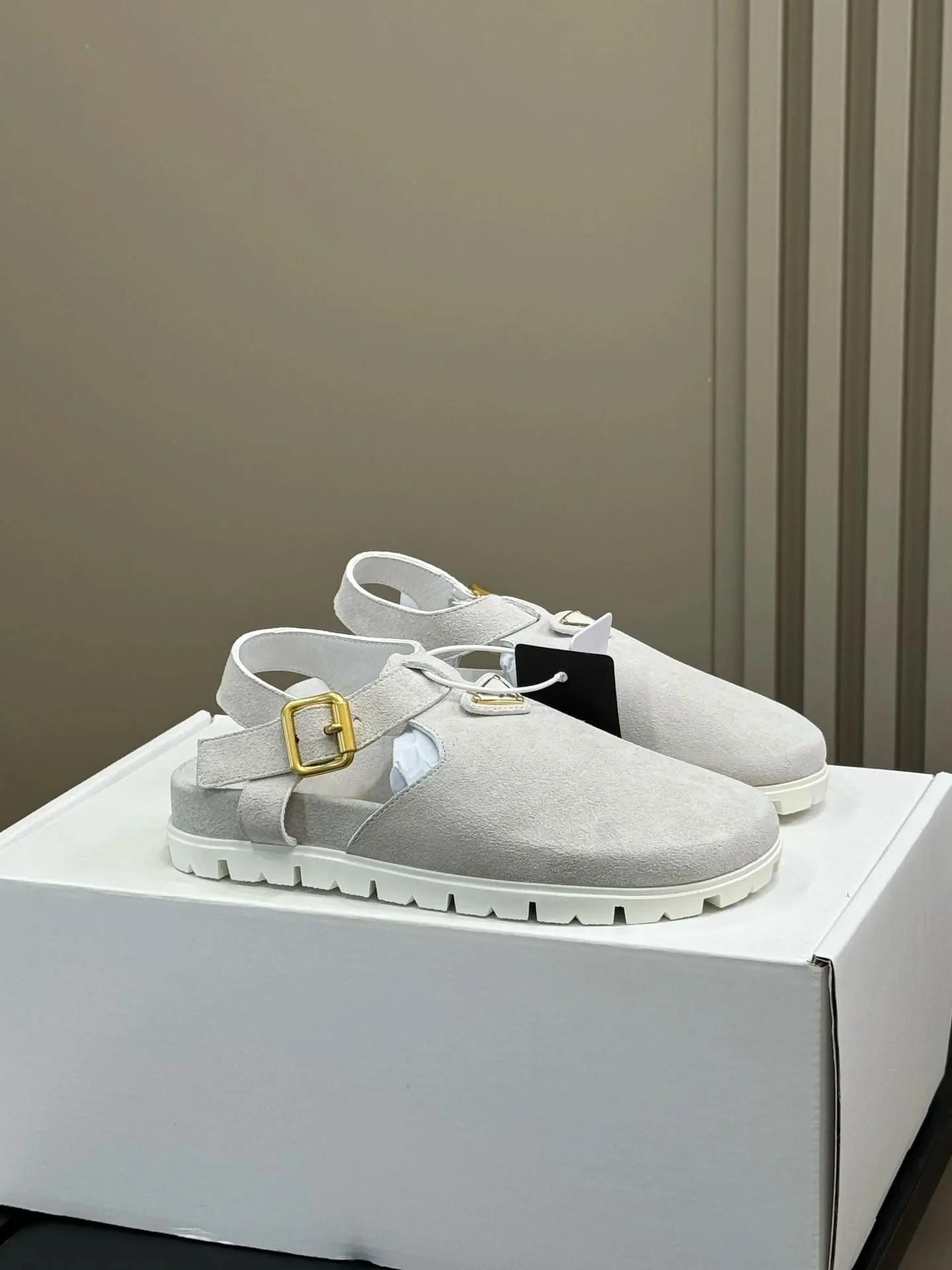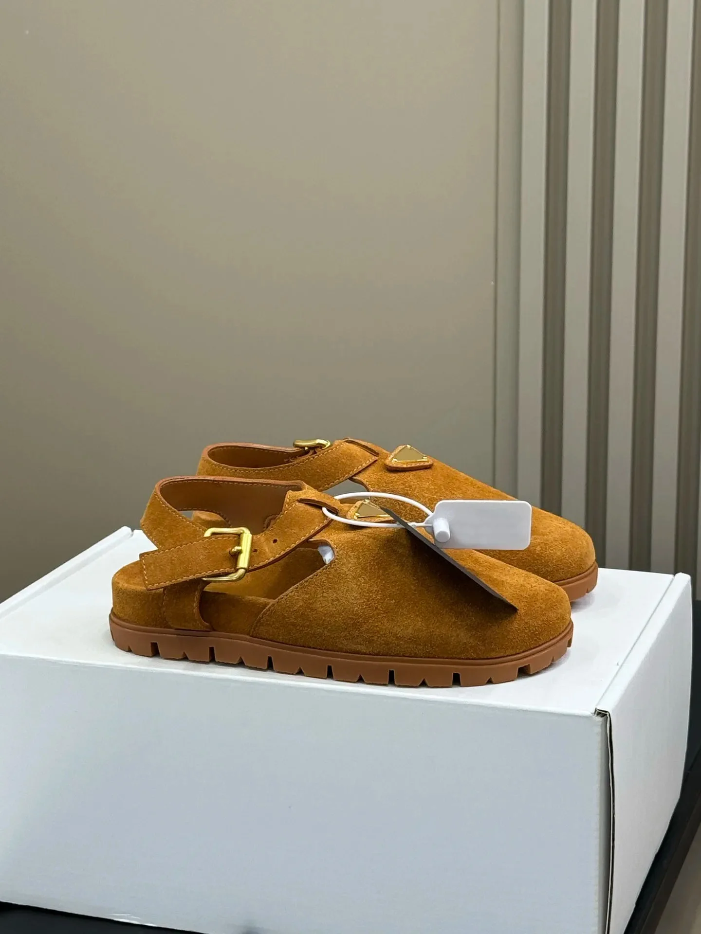 Women's Shoes Suede Buckle Clogs Flat Sandals