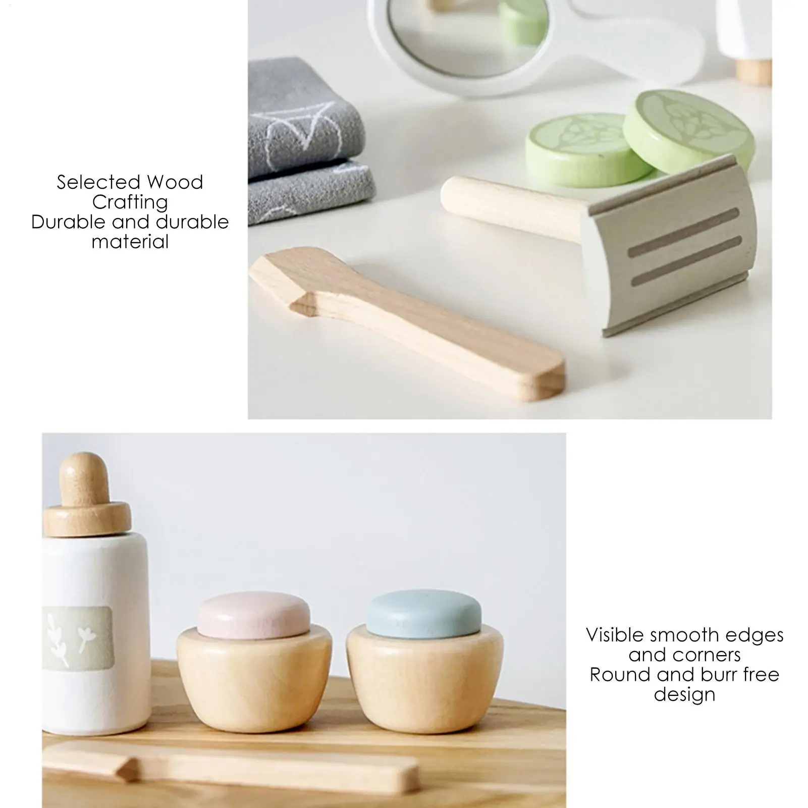 Wooden Cosmetic Set Wooden Kid's Beauty Salon Set Polished And Smooth Makeup Beauty Set Toy For Children Over 3 Years Old